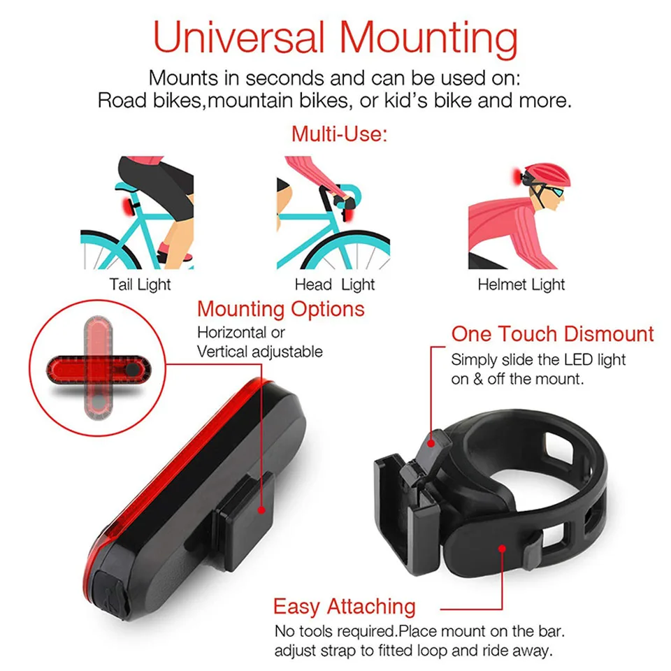 Задний светодиодный фонарь для велосипеда, USB, перезаряжаемый, водонепроницаемый, с кронштейном