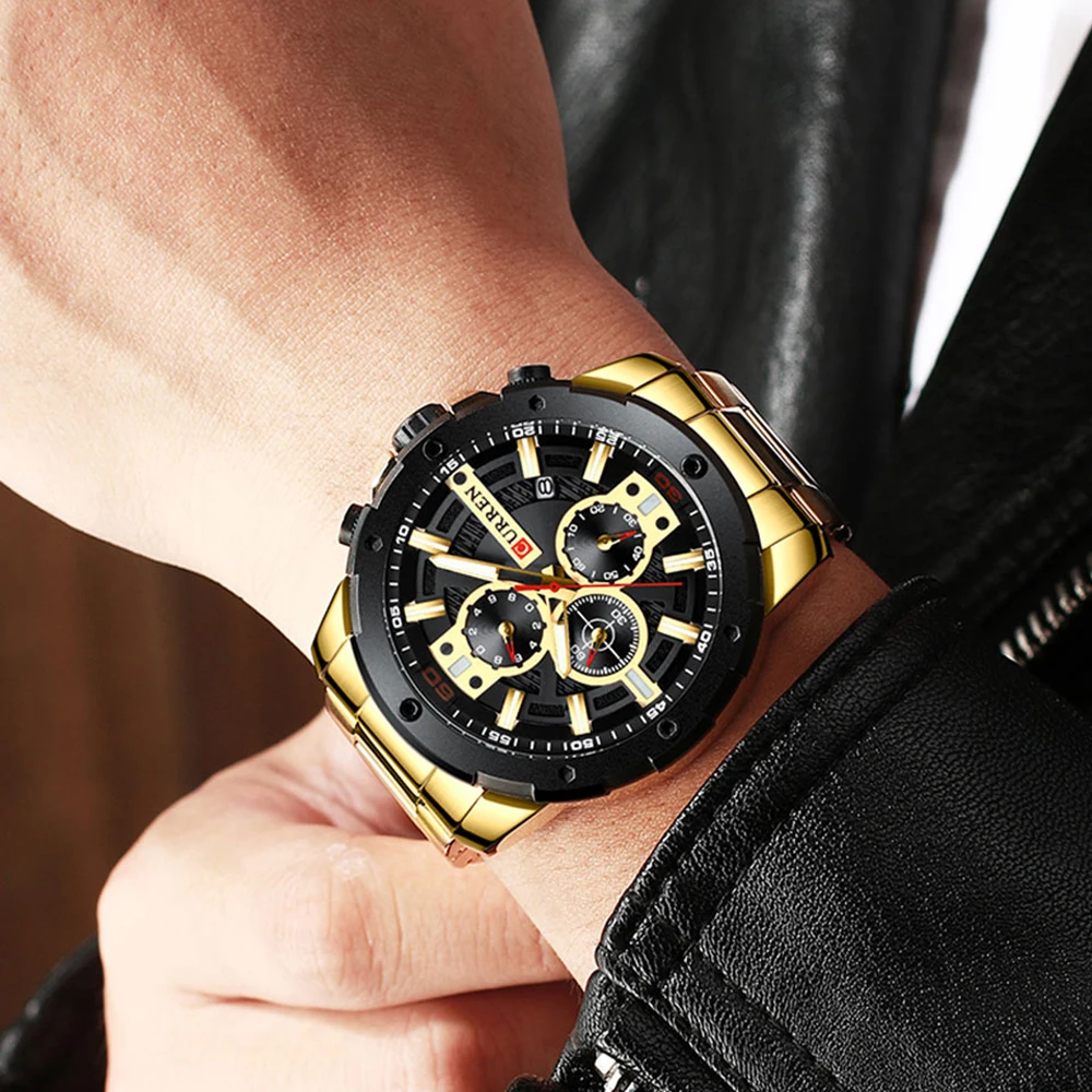 Спортивные часы Мужские Элитный бренд CURREN Модные кварцевые часы с повседневные из нержавеющей стали деловые наручные часы Мужские часы