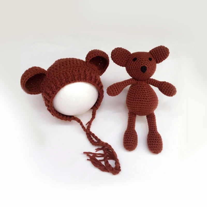 Детская шапочка с медведем, реквизит для фотосъемки, вязаная шапка с медведем, вязаная крючком шапка с цветами для новорожденных, шапка для маленьких девочек, реквизит для фотосъемки из хлопка с медведем