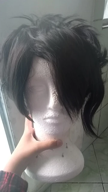 Парик для косплея из коротких черных термостойких синтетических волос с шапочкой