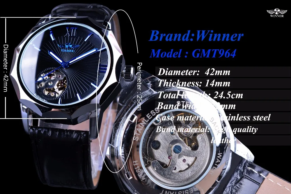 Часы-скелетоны Winner Мужские автоматические, комплект из комбинированных часов с геометрическим рисунком синего океана, роскошные модные механические, брендовые