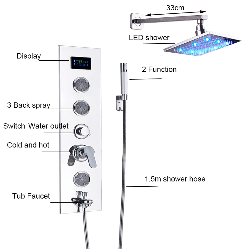 Новая изыскансветодиодный светодиодная душевая панель и Душевая насадка, Бесплатная комбинация, настенный хромированный смеситель для душа, 4 функции, смеситель для ванной комнаты
