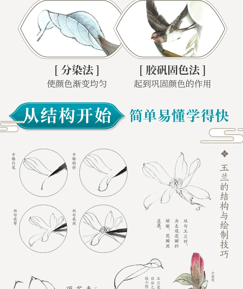 2 шт. тщательные цветы и птицы от входа к мастеру начинающая китайская живопись основы Рисование художественная книга