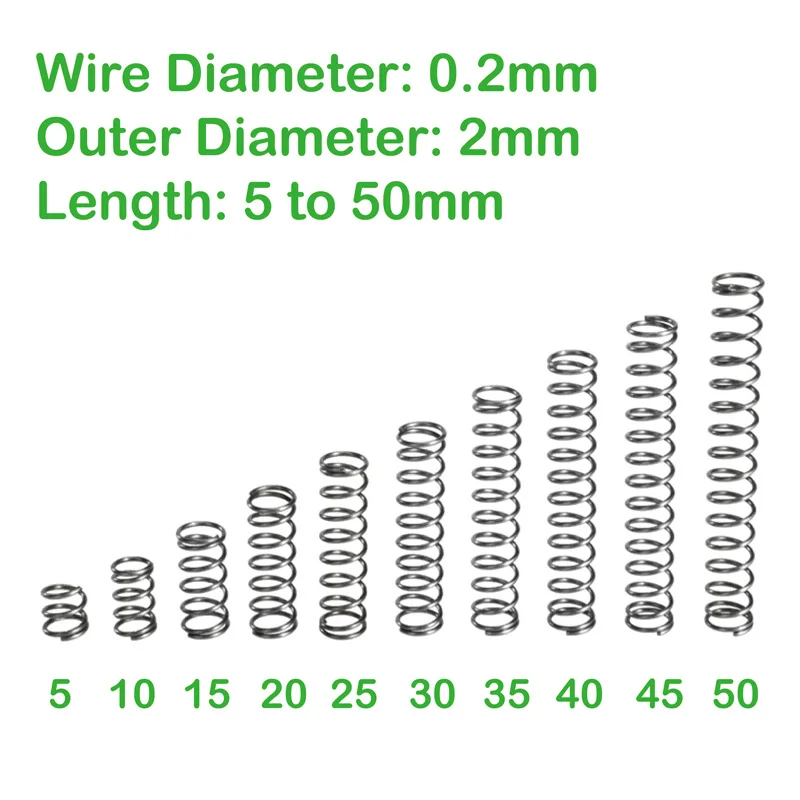 Пружина с наружным диаметром 0,2 мм, длина 2 мм, от 5 до 50 мм