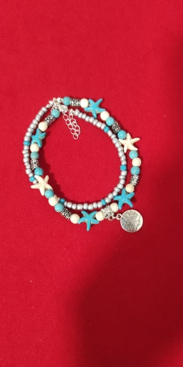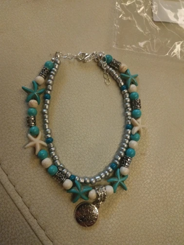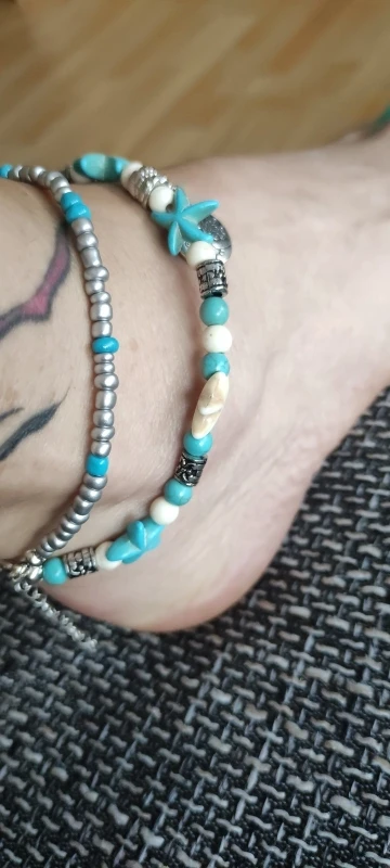 Очень красивый браслет .Я очень довольна. Достаточно длинный на мою ногу. Хорошо подошёл благодаря цепочке