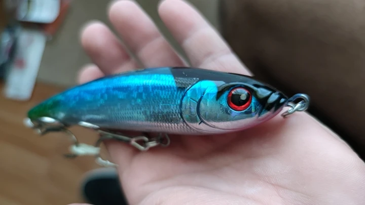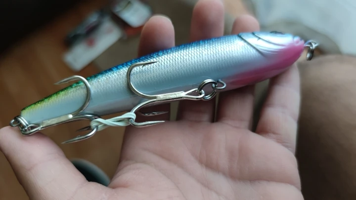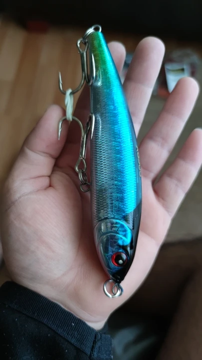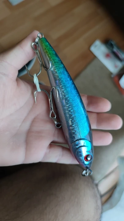 Gran acabado de color, anzuelos con muy buena calidad y buena muerte. Falta probarlo y sacar algun tunido. Pero realmente no puedo decir nada negativo sobre este señuelo. Calidad/precio tienes un señuelo para ir a los grandes depredadores sin gastar 40/50€ que cuestan en la tienda normalmente.