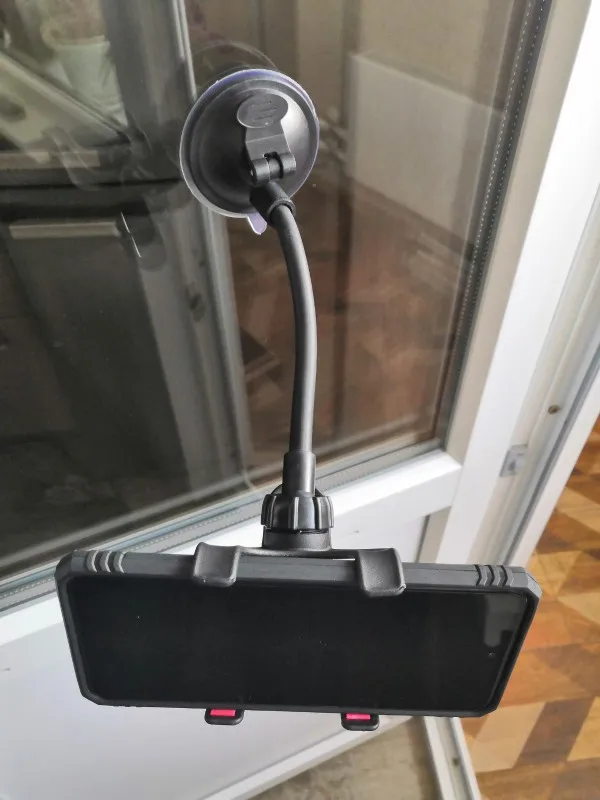 За свои деньги нормальный гаджет. На стекле держится хорошо, гибкой частью ничем не отличается от более дорогих аналогов. Фактически, сэкономили только на самом зажиме для телефона, который представляет собой хлипковатую прищепку, однако шарнирное соединение по размеру такое же, как у большинства других держателей с Ali, так что можно использовать и другие зажимы. Доставка до Москвы заняла около 2-х недель.