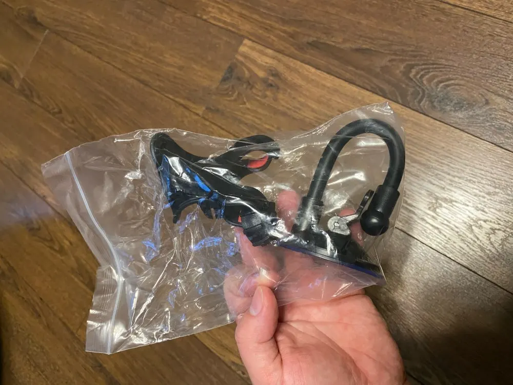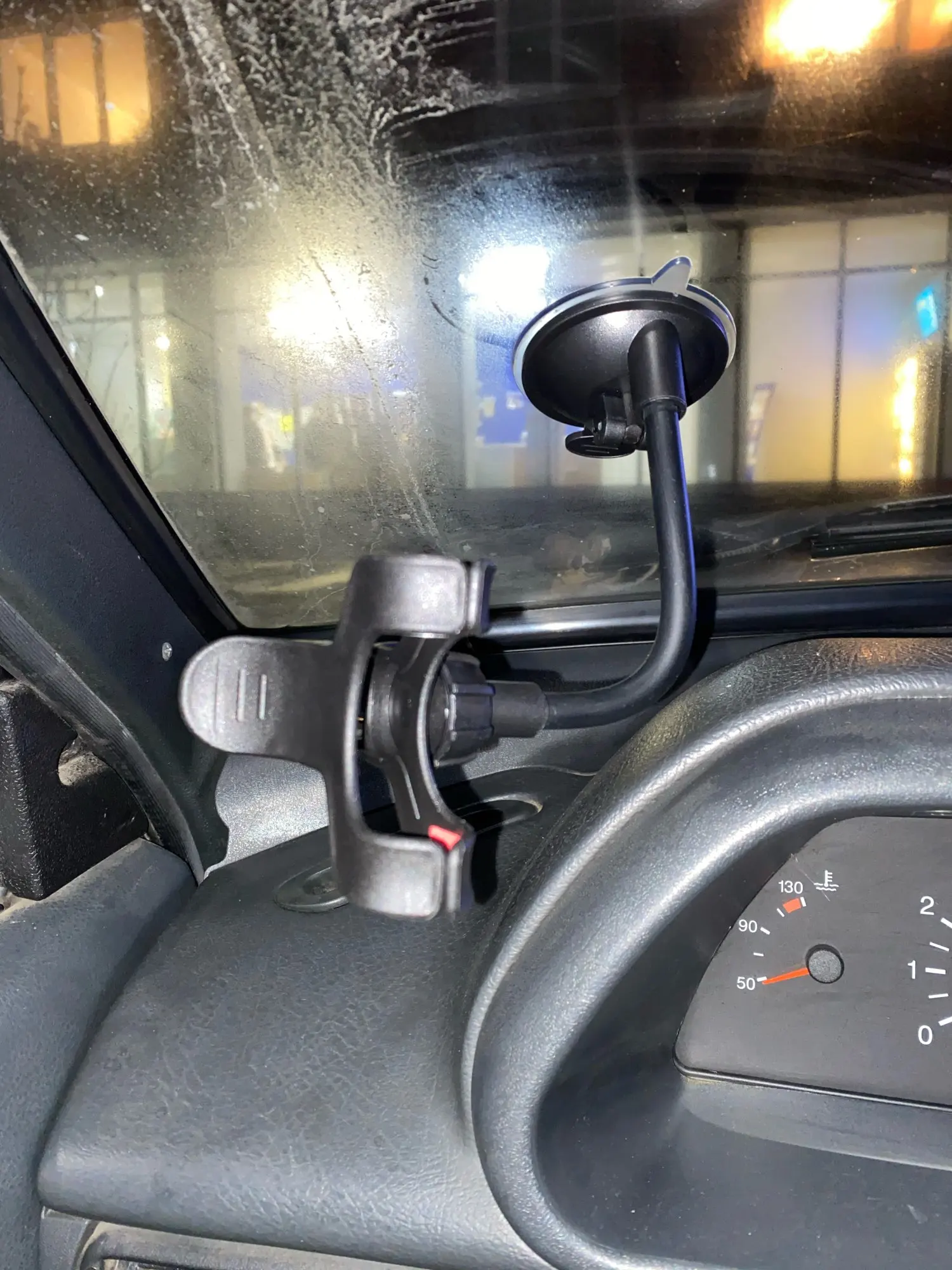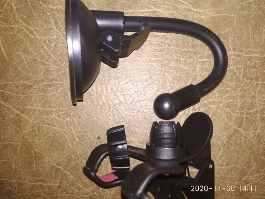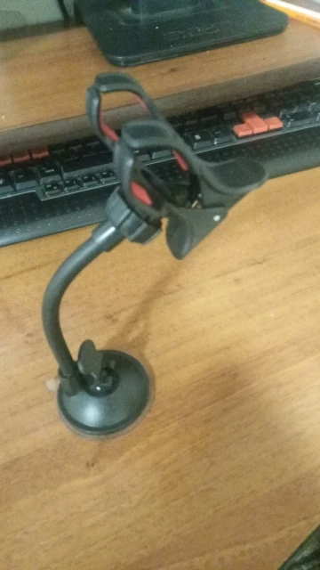 Нормальная присоска, сам держатель мне не понравился. У меня от старого остался удобный, я снял его и переставил на эту присоску. Получилось очень хорошо. Присоски часто отваливаются. Подогнул гибкую часть на панель так, чтобы был упор, получается расклинил. Держится хорошо и удобно.