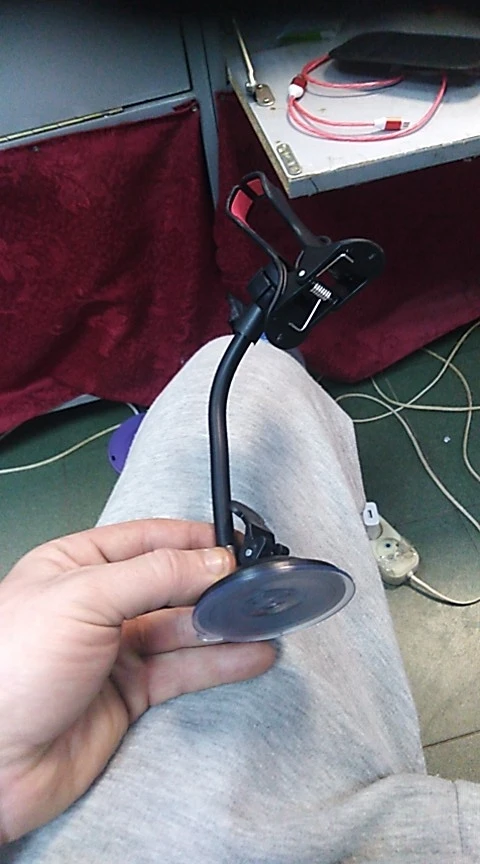 Посылка шла как обычно, около месяца. Качество держателя низкое, буквально после нескольких минут эксплуатации отломилось гибкое крепление снизу. Причем отломался сам алюминиевый пруток внутри пластиковой оболочки. Приклеил на холодную сварку, посмотрим как будет.
