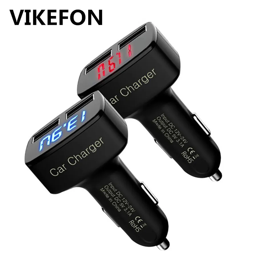 Автомобильное зарядное устройство VIKEFON 4 в 1, автомобильное зарядное устройство Usb 3,1 А, быстрое зарядное устройство для телефона, измеритель напряжениятемпературысилы тока, тестер с цифровым светодиодным дисплеем