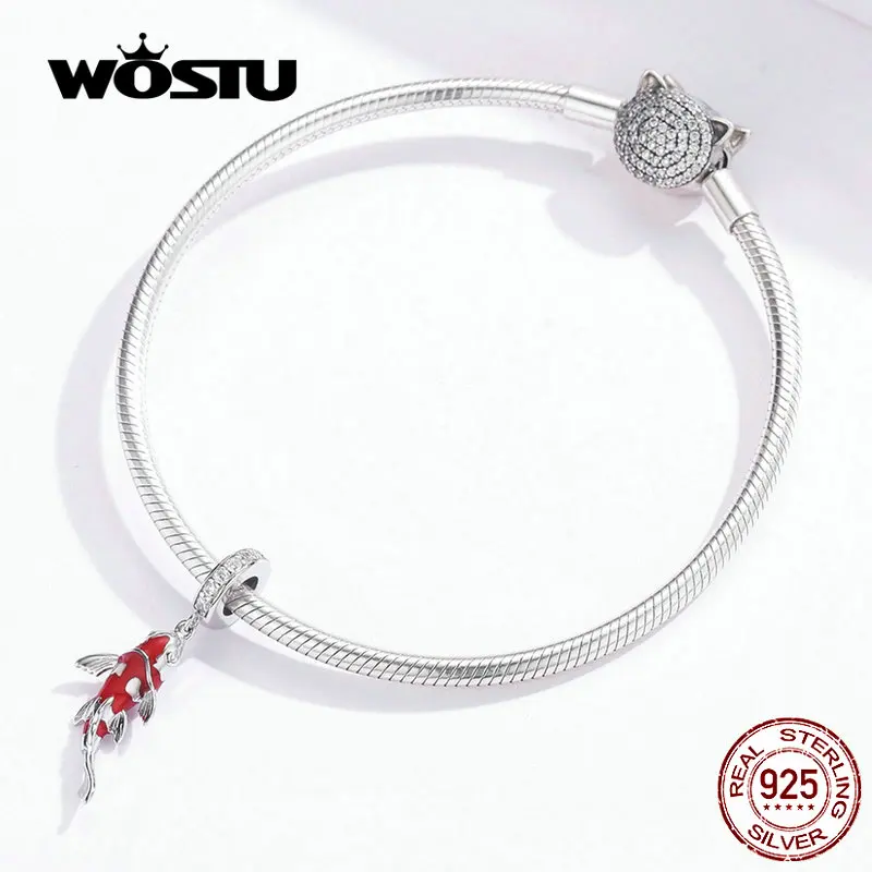 Женский браслет WOSTU lucky carp, из стерлингового серебра 925 проб...