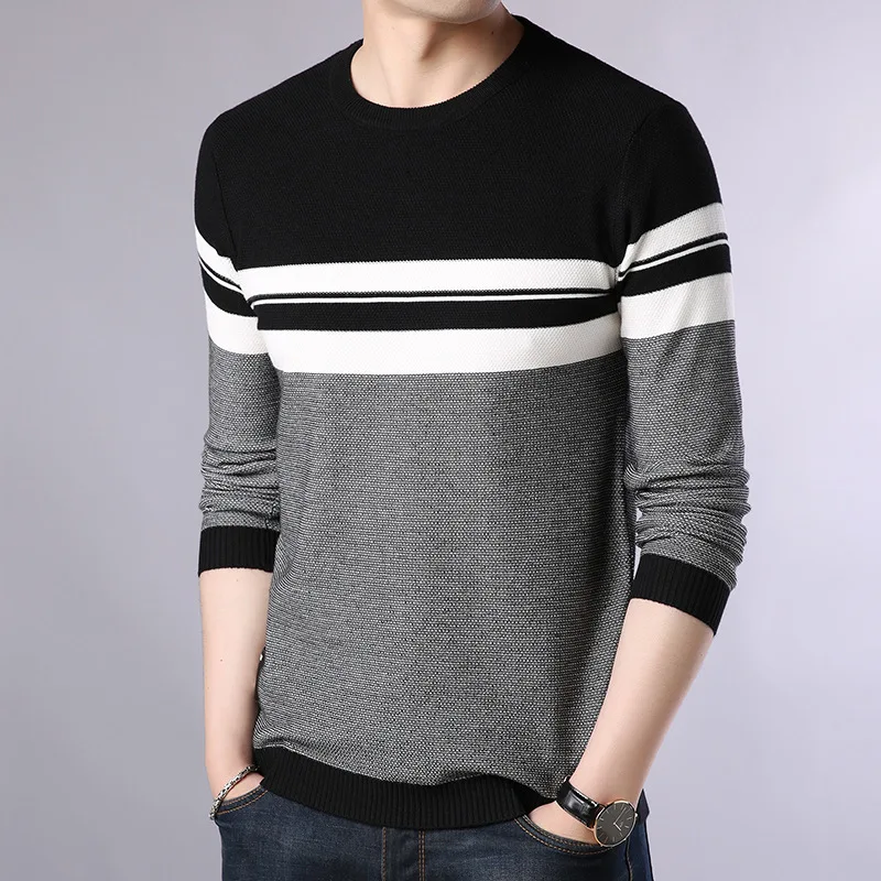 Мужской шерстяной пуловер Mountainskin, повседневный приталенный трикотажный свитер в полоску, с круглым вырезом, осень 2019