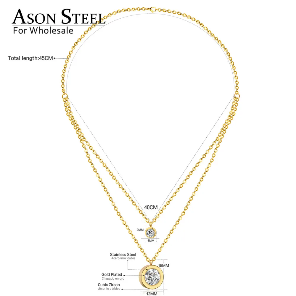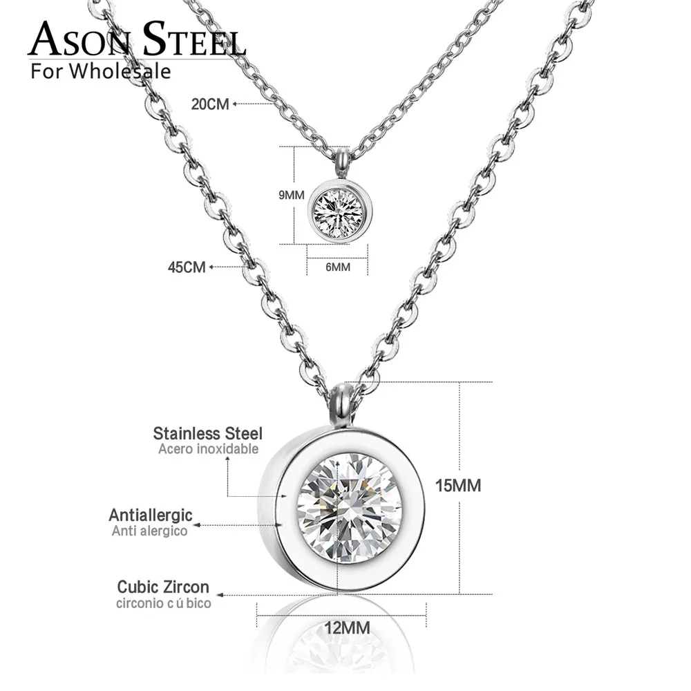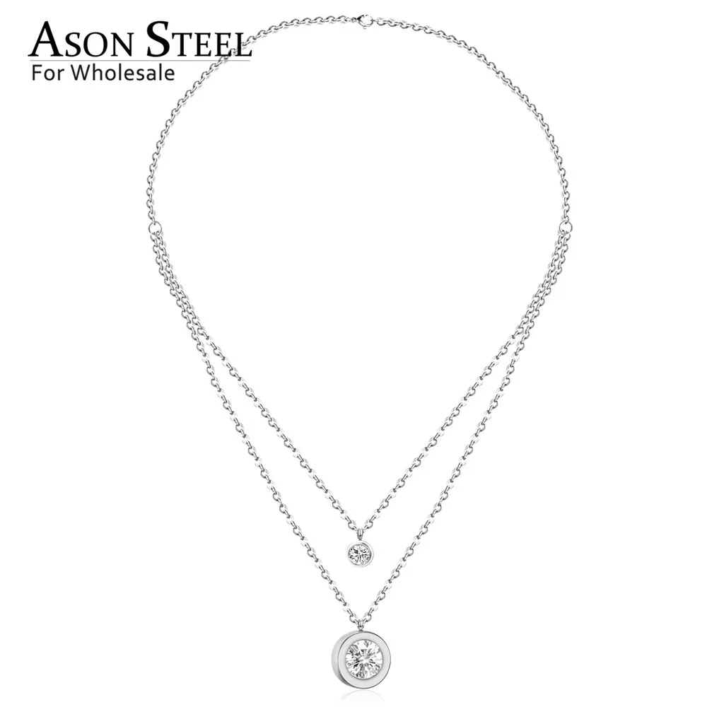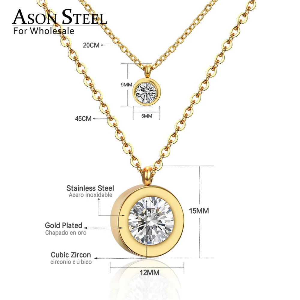 ASONSTEEL, классический стиль, круглые кубические циркониевые подвески, ожерелья из нержавеющей стали, двойные цепочки, вечерние, свадебные, оптовая продажа