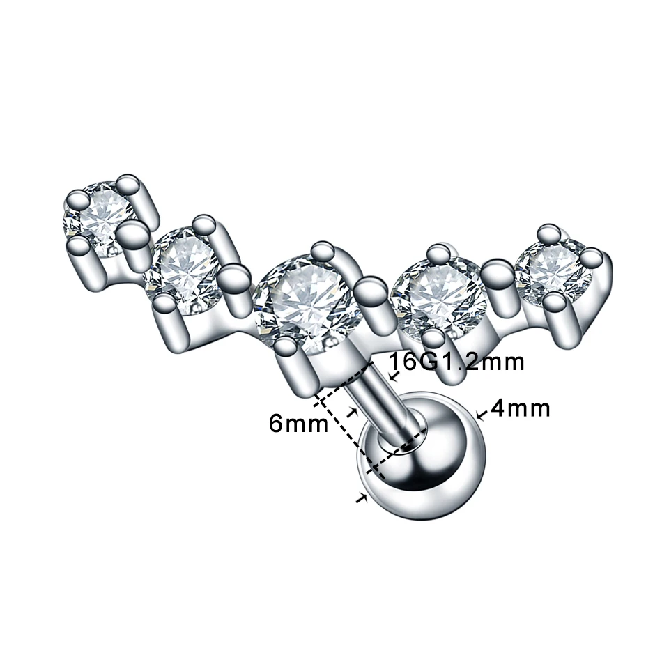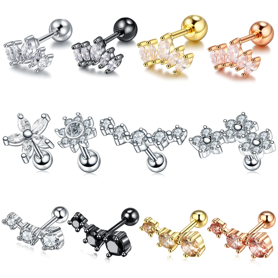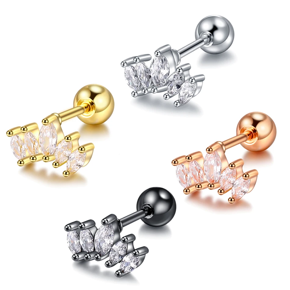 1 шт. стальные серьги-гвоздики с фианитами Orelha, гвоздики для верхних ушей, Серьги-пусеты для пирсинга, украшения для женщин