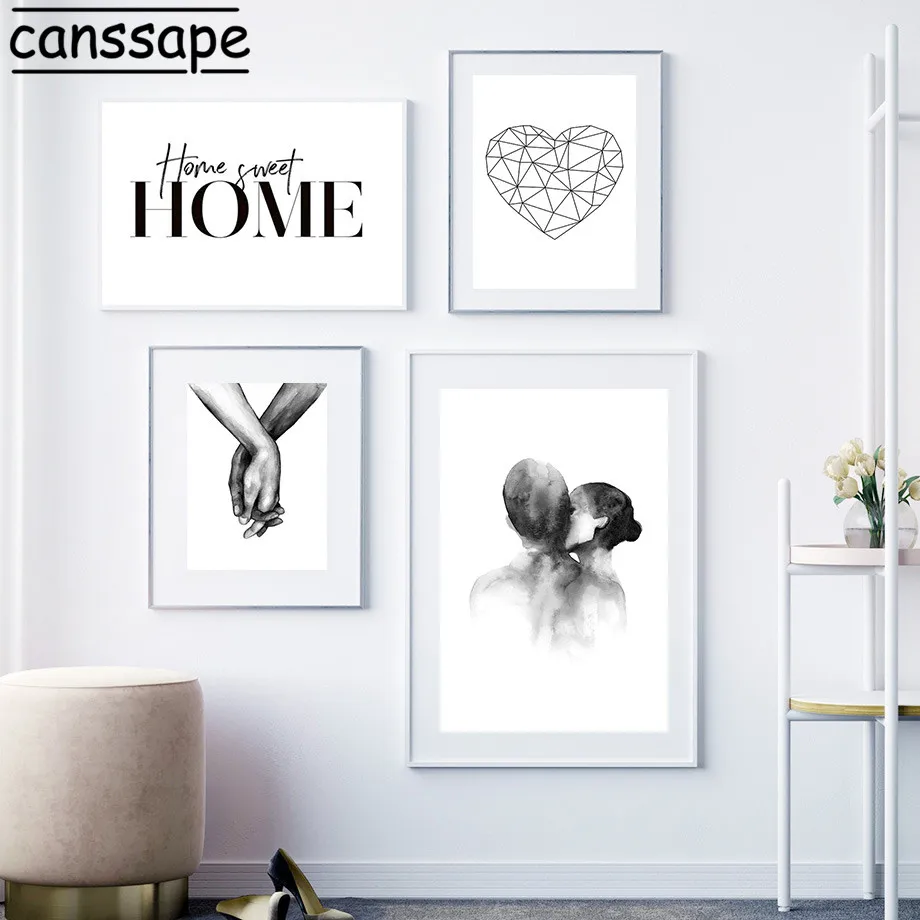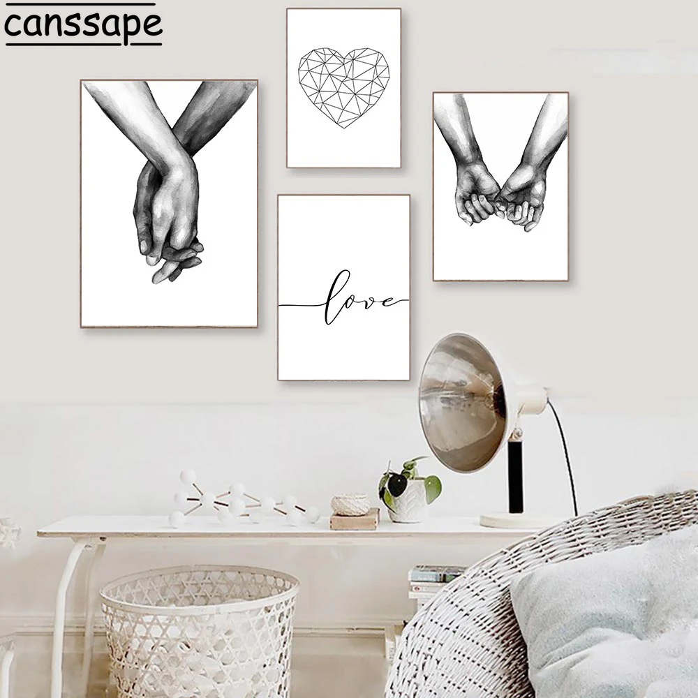 Любовь постер пара держа руки Живопись черный и белый стены искусства холст минималистский принт скандинавские настенные картины для гостиной