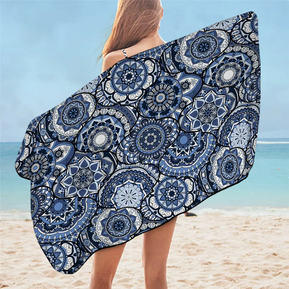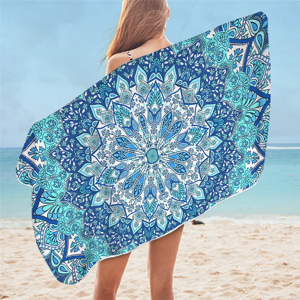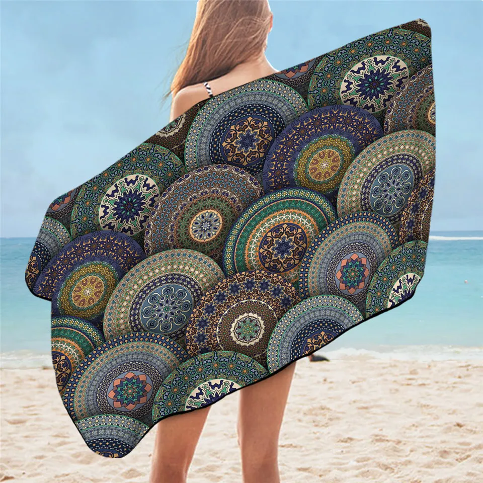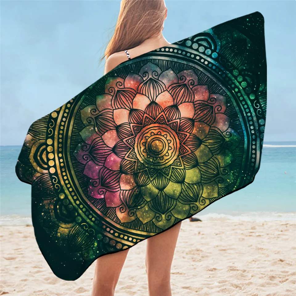 Полотенце для ванной BeddingOutlet с изображением мандалы, цветочное полотенце для пляжа путешествий для взрослых, полотенце из микрофибры зеленого и синего цветов, 75x150 см