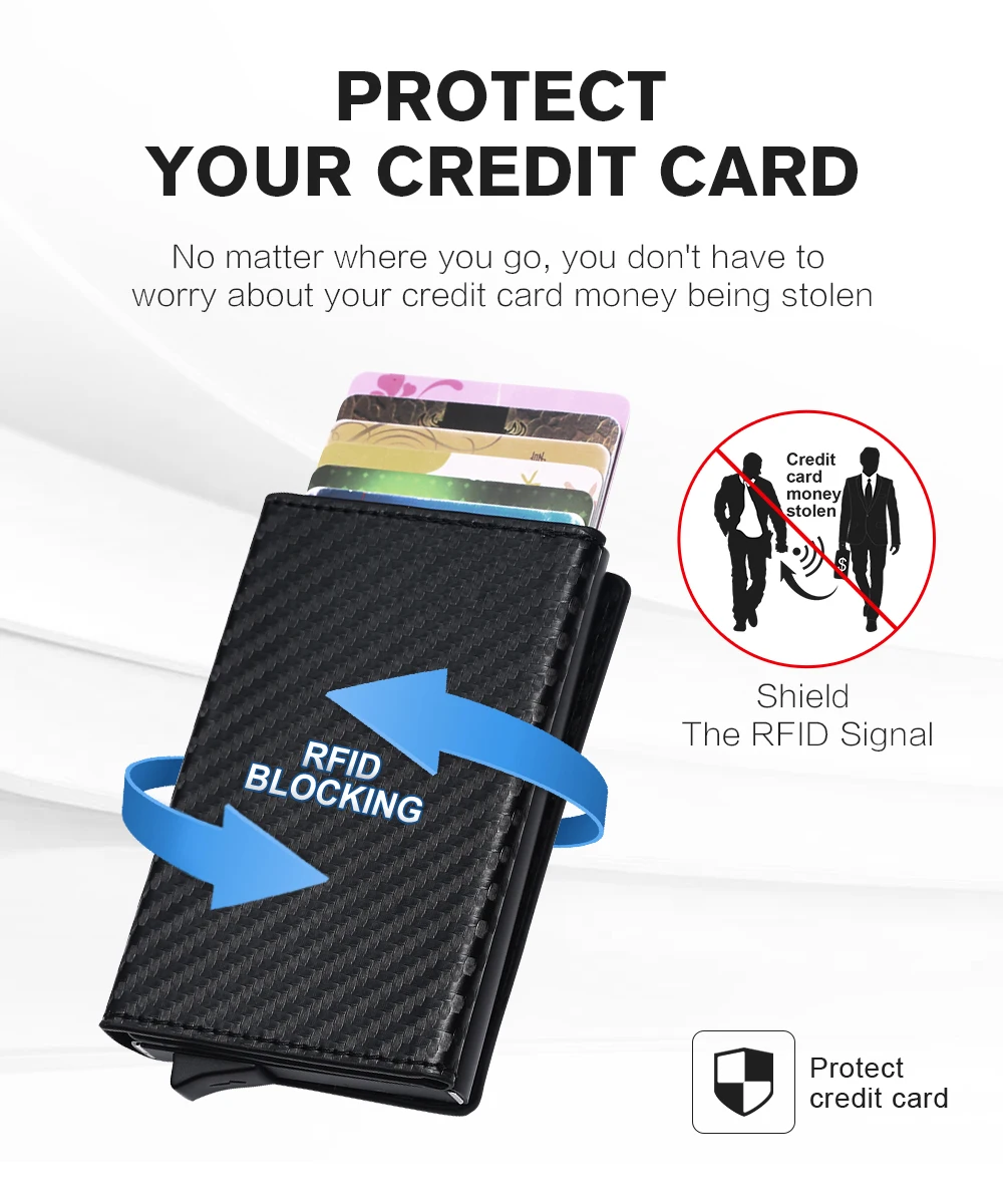 Мужской металлический бумажник ZOVYVOL, небольшое портмоне с радиочастотной идентификацией, плоский держатель для кредитных карт и удостоверения личности, смарт-кошелек черного цвета в минималистском стиле