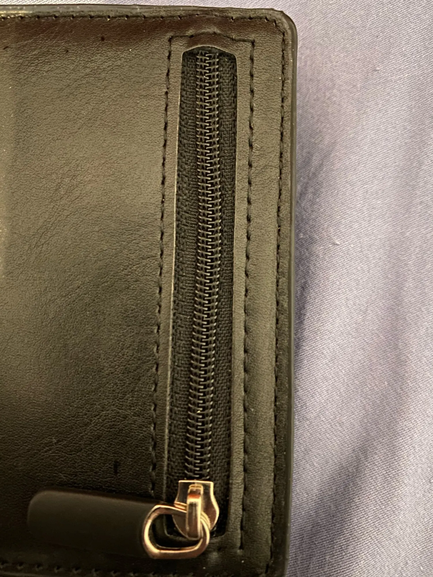 Качество дерьма карман на молнии бесполезно и 20 евро Примечание было достаточно strenght, чтобы открыть магнитное закрытие талии денег...