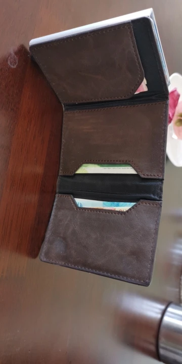 Кошелёк просто ужас!!! Его и кошельком то и не назовёшь, материал отделки клеенка. В середине вшит металический кейс для визиток с необработанным краем из которого НЕВОЗМОЖНО достать визитки которые ты туда положил, они просто не вылазят, выколупывали пинцетом. Магнит держатель оторван. За такие деньги! товар просто отправился в мусорку!