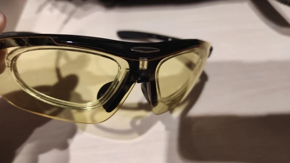 тонкий пластик очков, подойдет для велосипеда и тп активного спорта, для страйкбола не стал бы рекомендовать. Размер маловат. Стекла съемные, не знаю зачем, держатся хорошо.