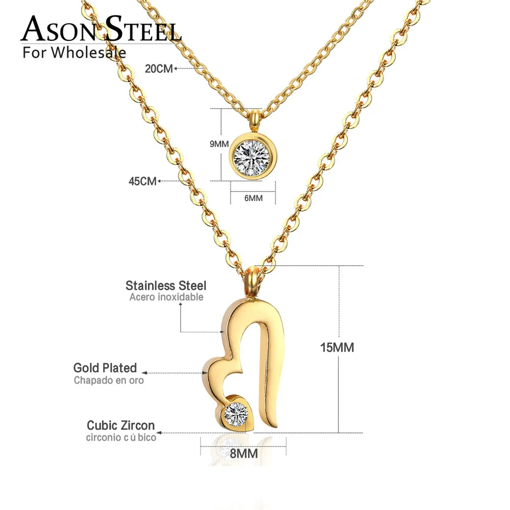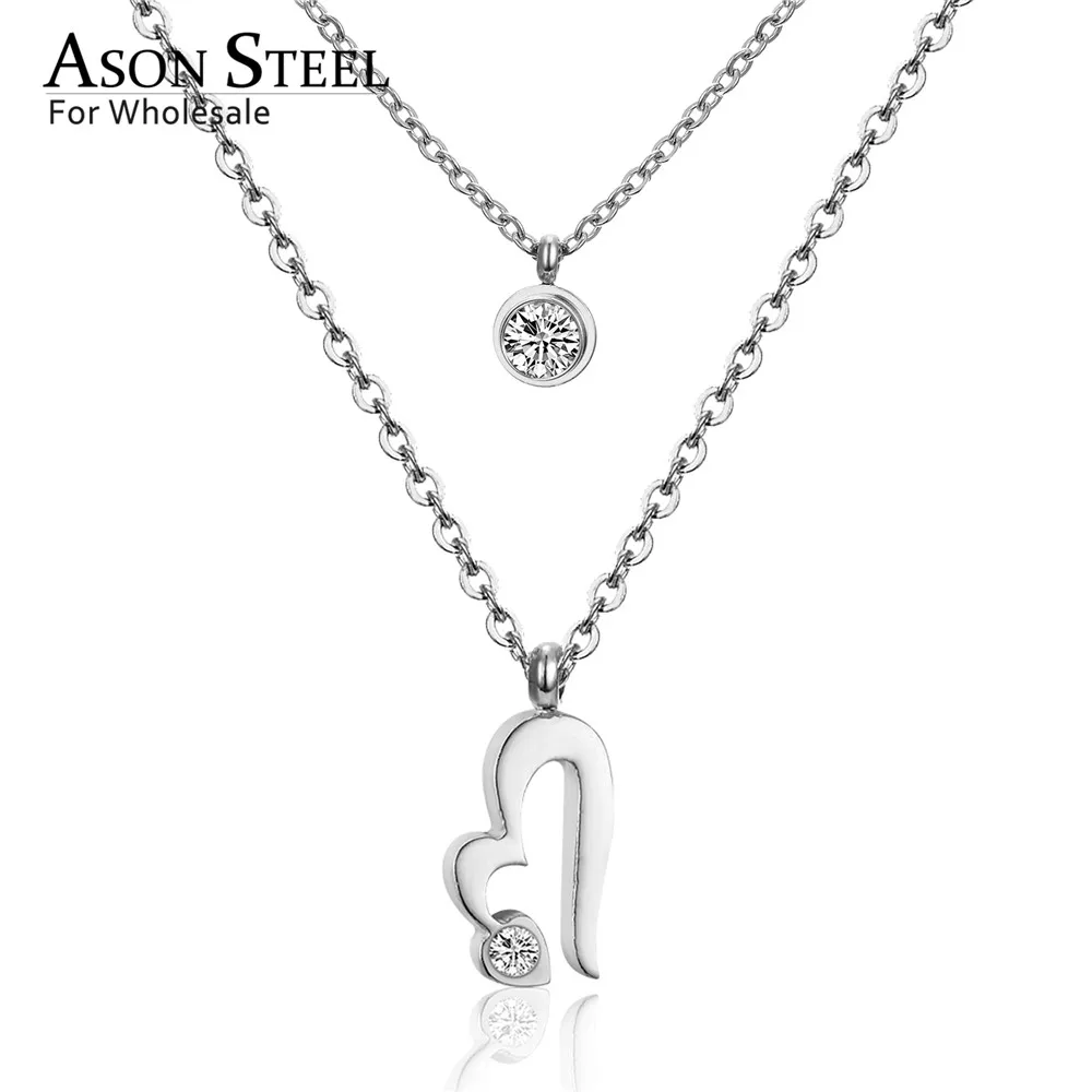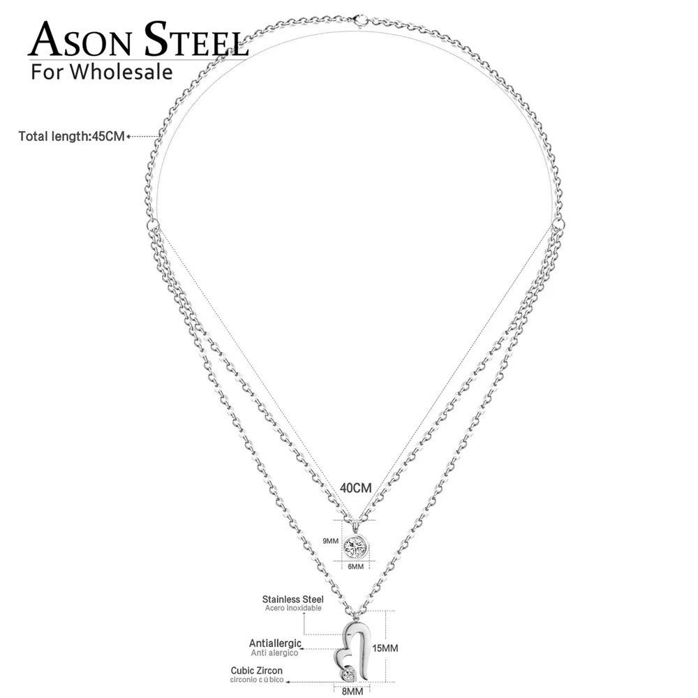 Ожерелье ASONSTEEL в форме сердца, подвески из нержавеющей стали с круглым кубическим цирконием, цвет золотосеребро, Двойная Цепочка, ошейники, ювелирные изделия