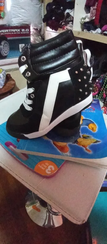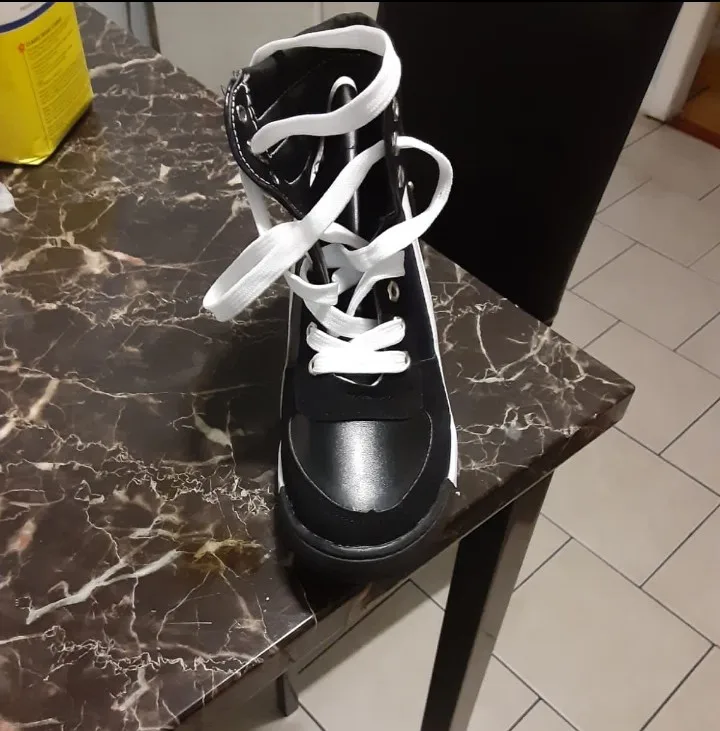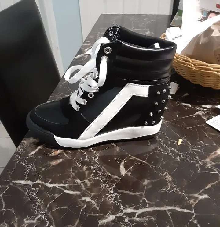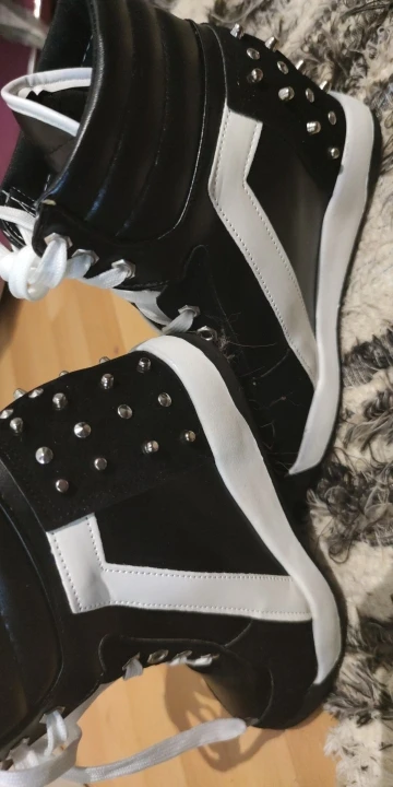 Обувь очень красивая, но легко мнется на каблуке. Таким образом, использованный один раз и уже имеет 4 шипа, и кольцевые шнуры не были хорошо управляемы, или используйте первую линию, как известно, что уйдет, свободно. Примечание: качество отделки отсутствует.