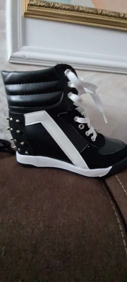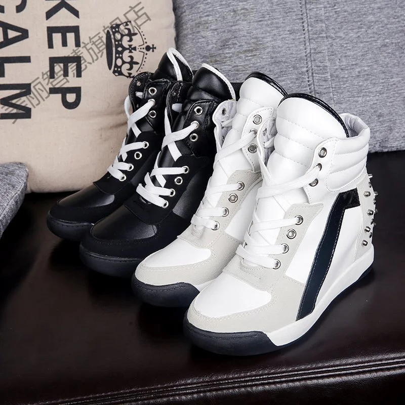 Женские кроссовки с заклепками, черные или белые кроссовки на скрытой танкетке, повседневные теннисные туфли, обувь для тренировок, 2022