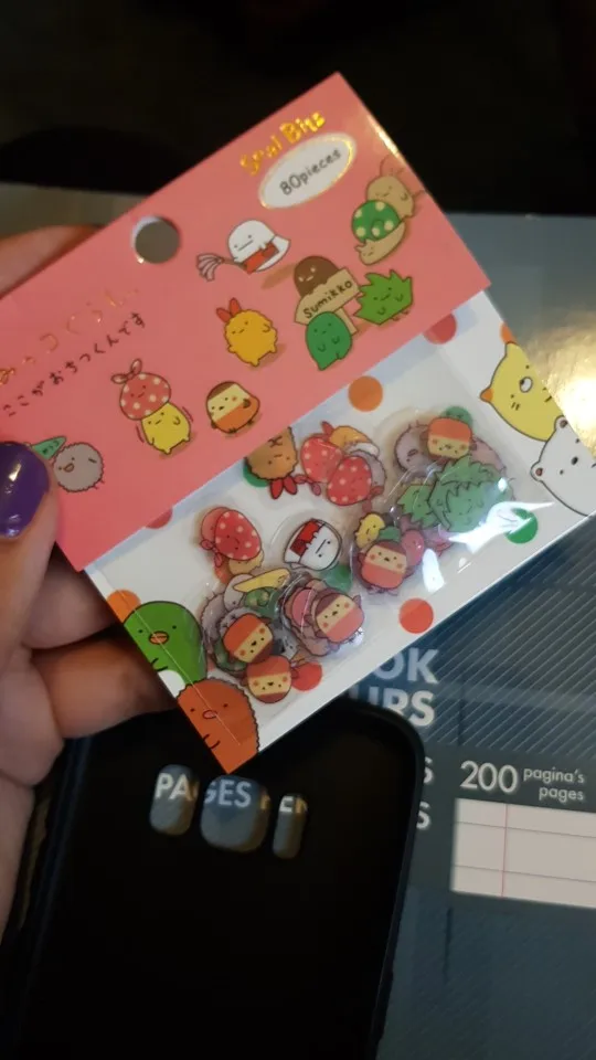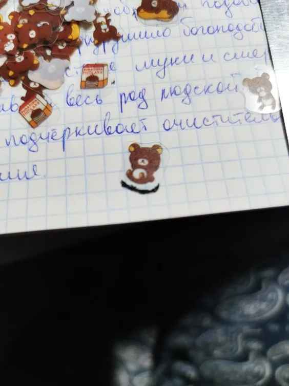 чудесные наклейки. дошли за полтора месяца, точно по описанию. в отзывах читала, что у них нет клейкой основы, но сама попробовала - она есть, очень плотная и трудновато отделяется, пришлось немного постараться даже с длинными ногтями, но результат порадовал, очень хорошо вписались в конспекты и ежедневник.