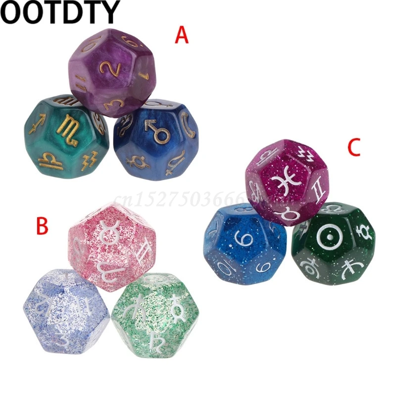 3 шт Многоцветный 12-сторонние смолы кости, Таро Созвездие Гадания и предсказания
