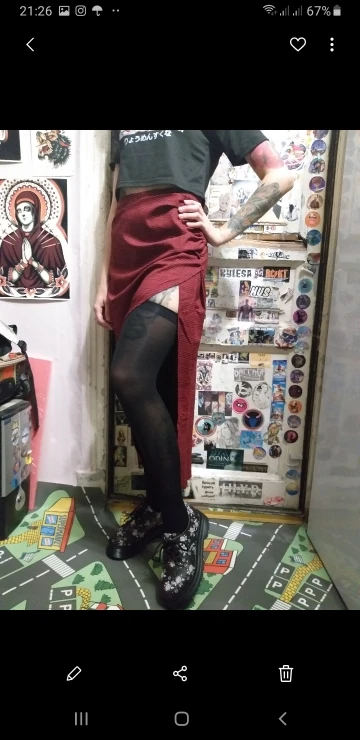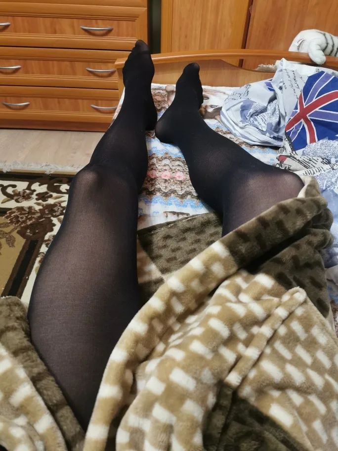 Так. Сразу прошу прощения за фото. Стою в трусах и прикрываюсь шарфом. Довольно плотная резинка, у меня большие бёдра, так что ногу пережимает. Но зато не сползают, а это огромнейший плюс. Ну и под юбкой будет не видно пережатого места.) Неплохие. Очень сильно пачкаются. Я на секунду поставила ногу на пол и тут же появился отпечаток на подошве. Так что нужно аккуратно носить. Материал довольно плотный, мне кажется, летом жарко будет. Это на весну/осень.