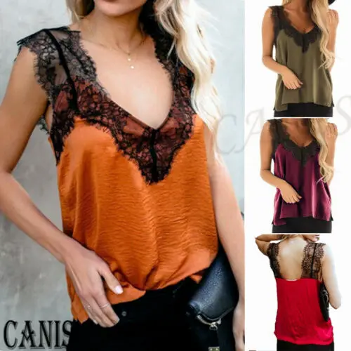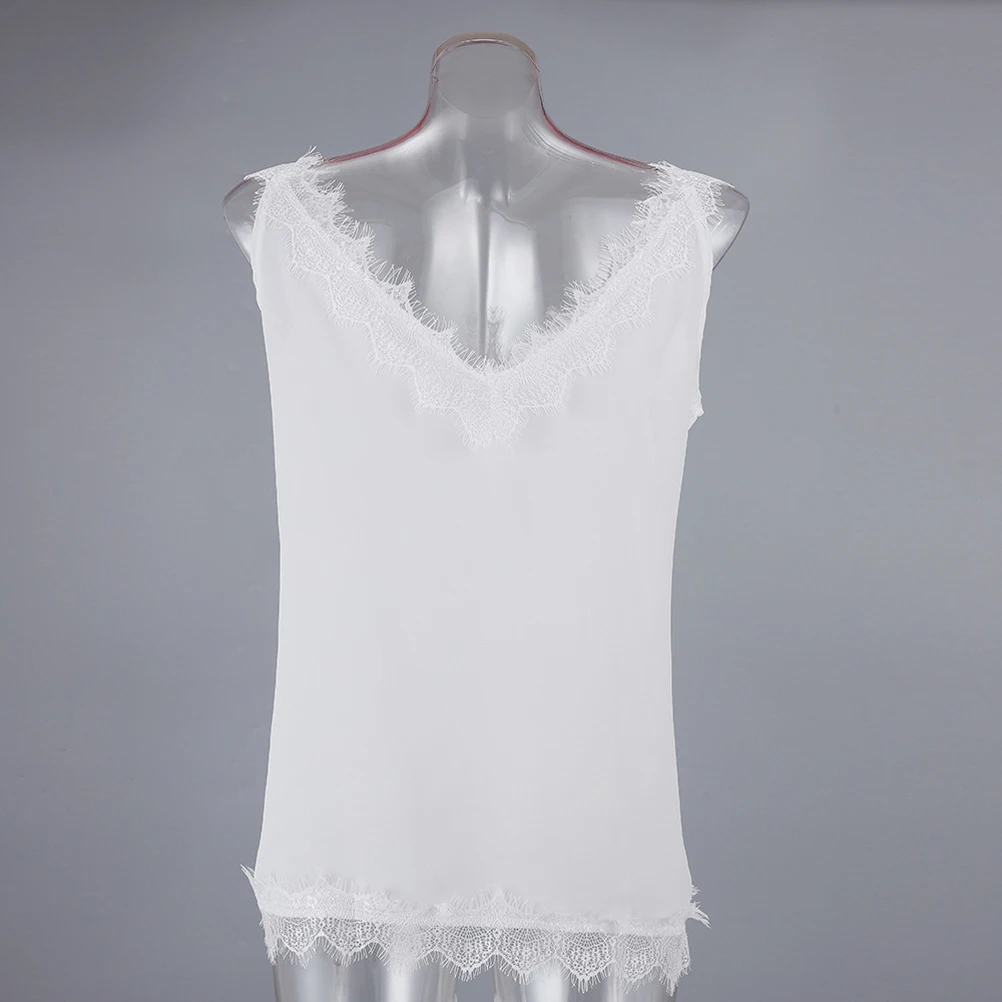 Топ женский кружевной с V-образным вырезом, пикантная майка без рукавов, уличная одежда, повседневный Топ, лето 2019