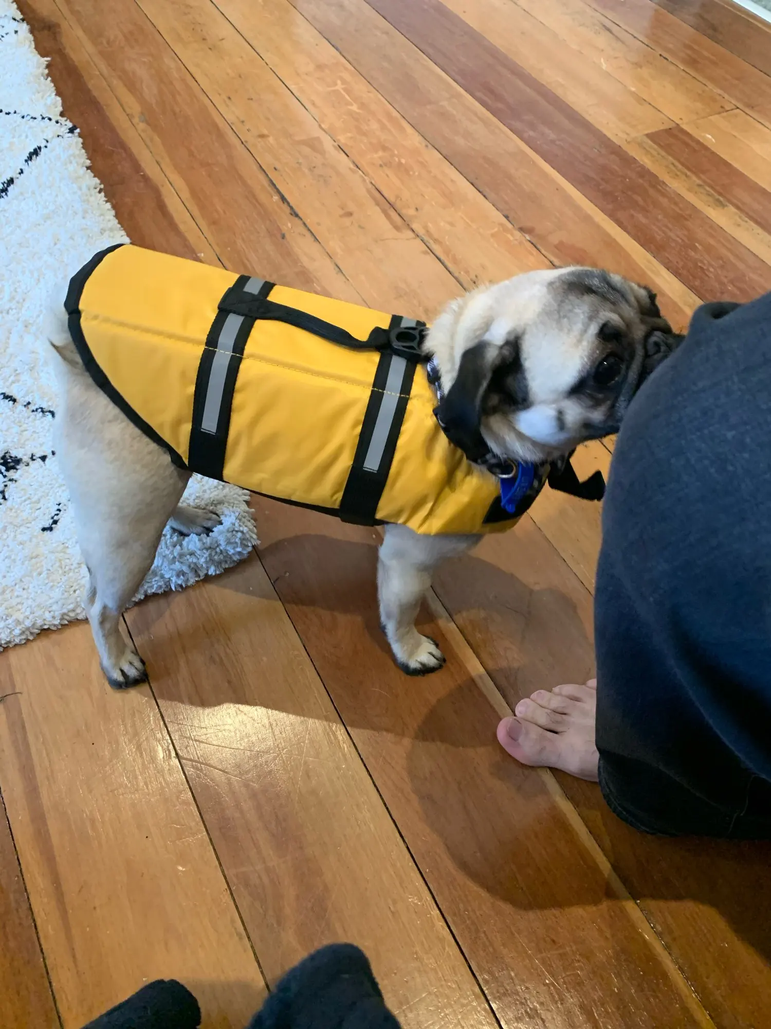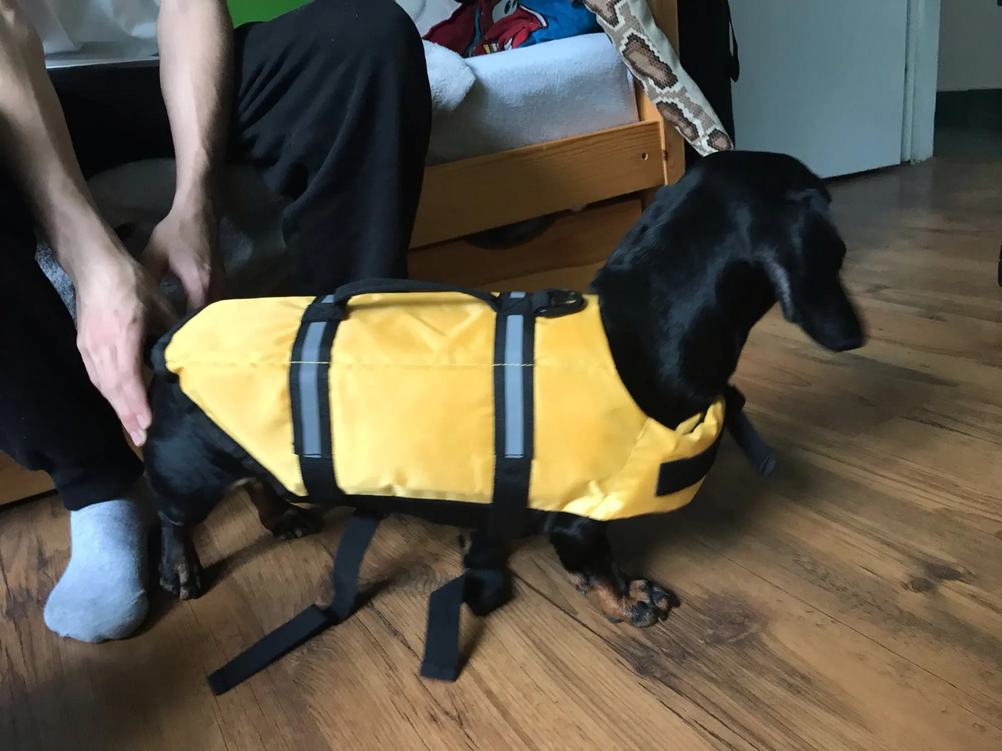 Отличный плавательный жилет. Заказывали пёсику под реабилитацию, подошло идеально. Огромное спасибо продавцу!