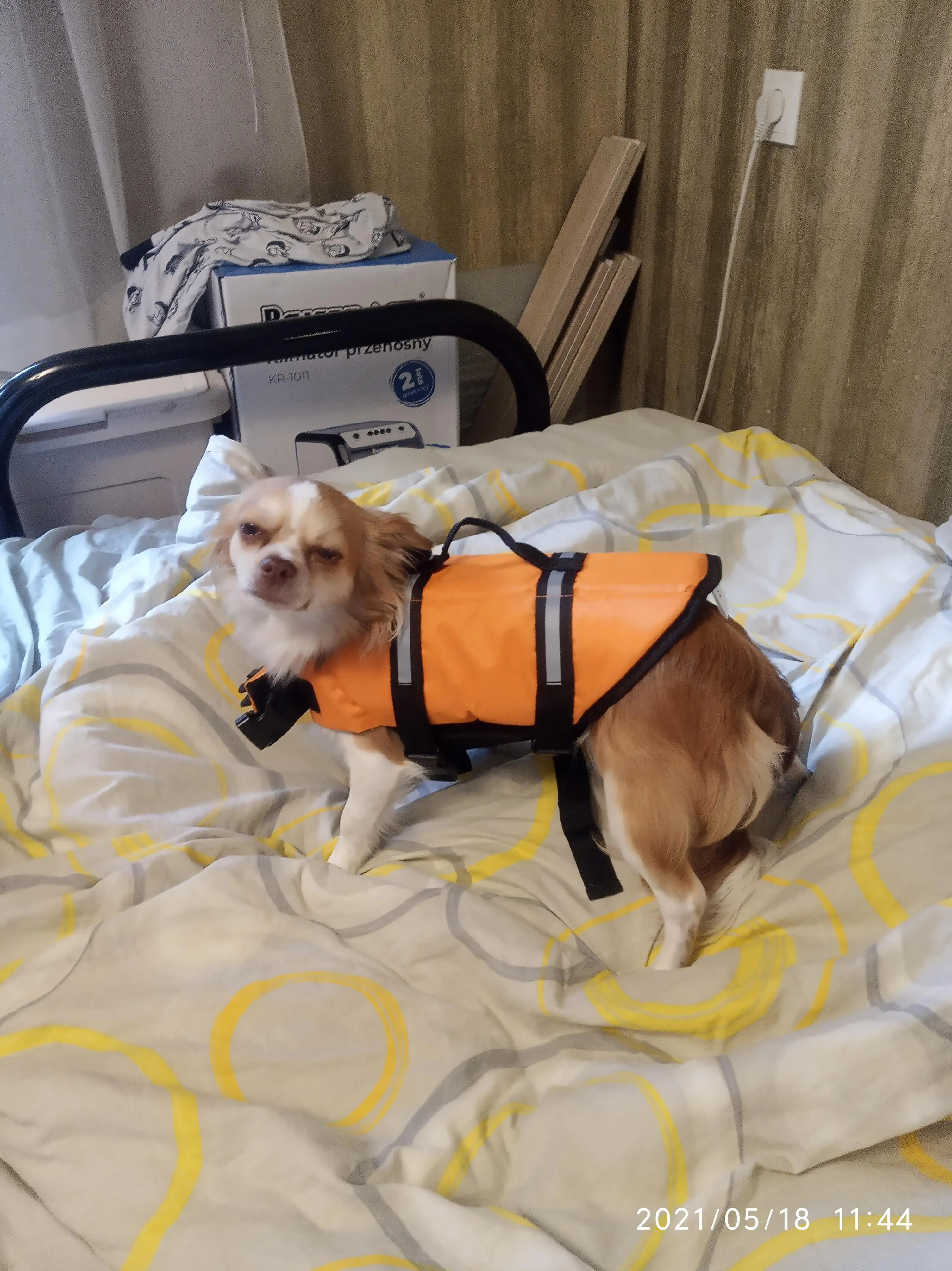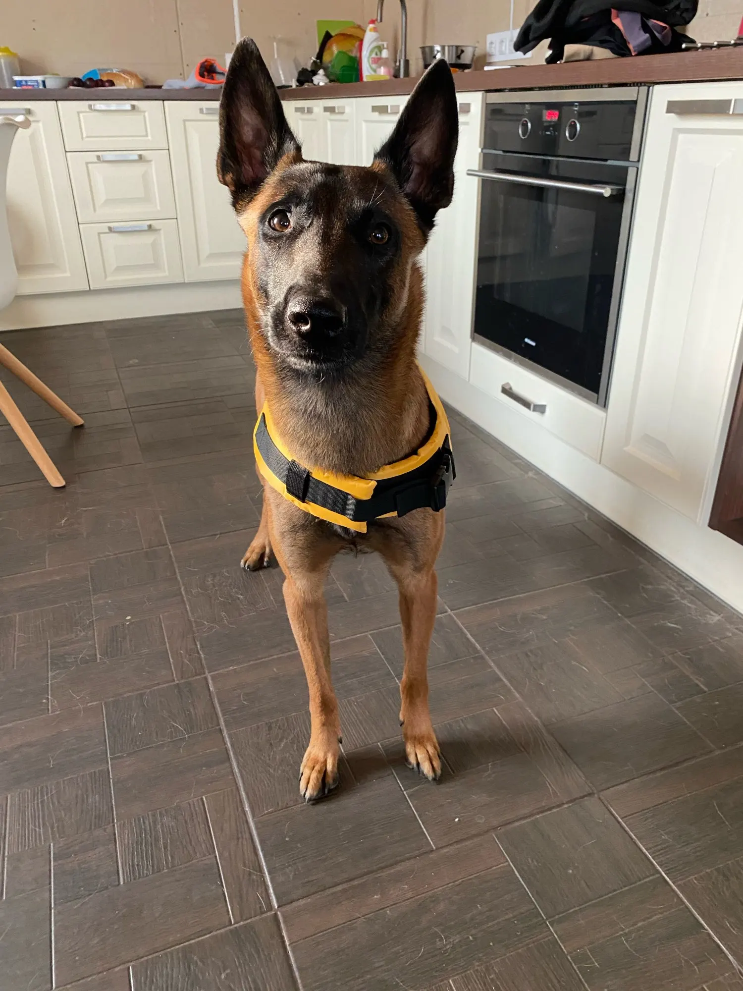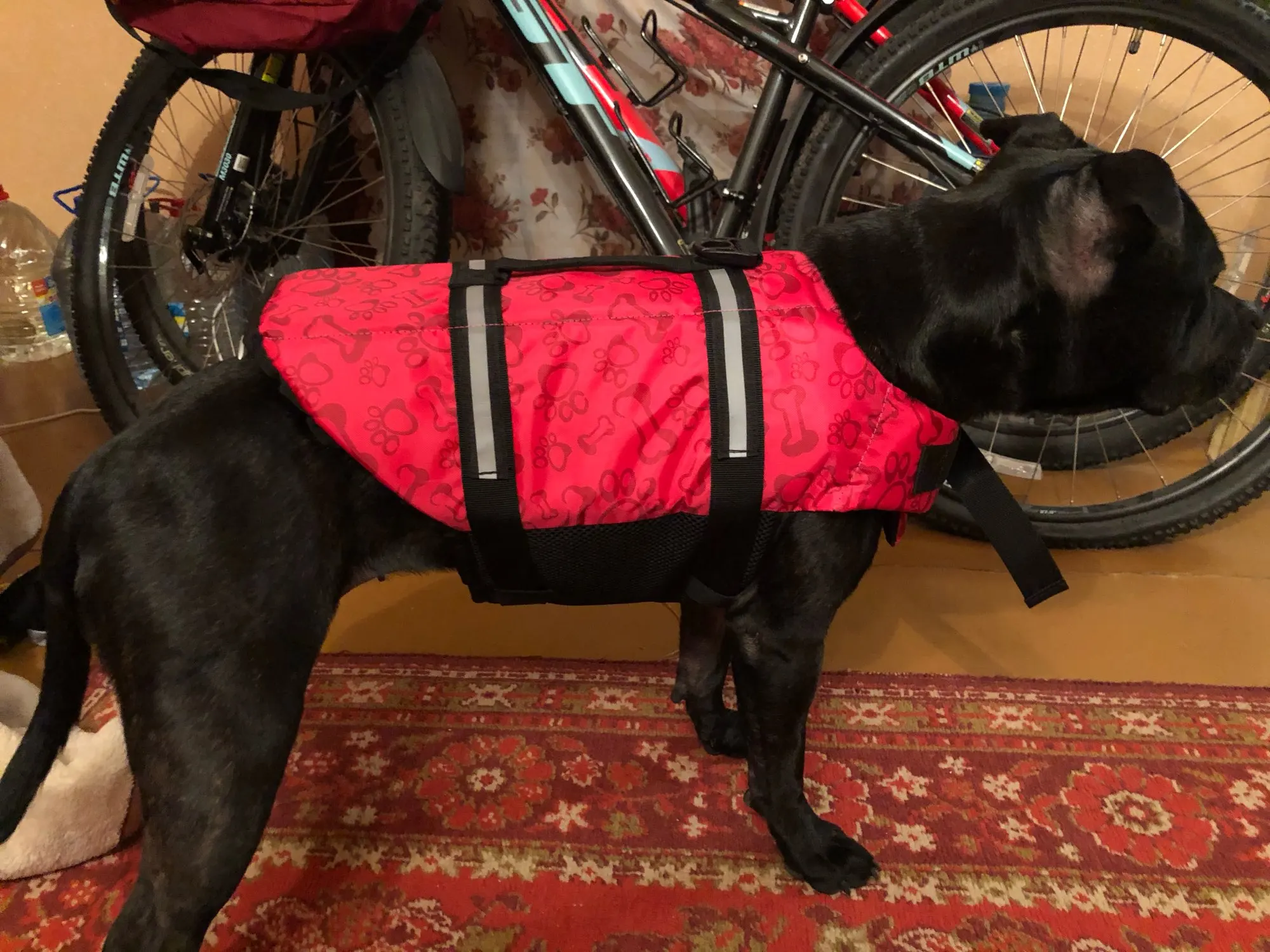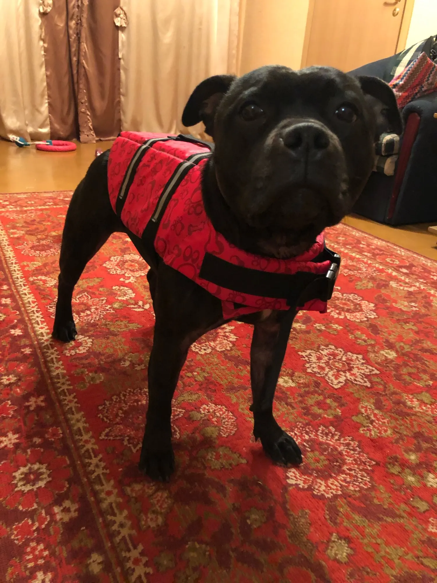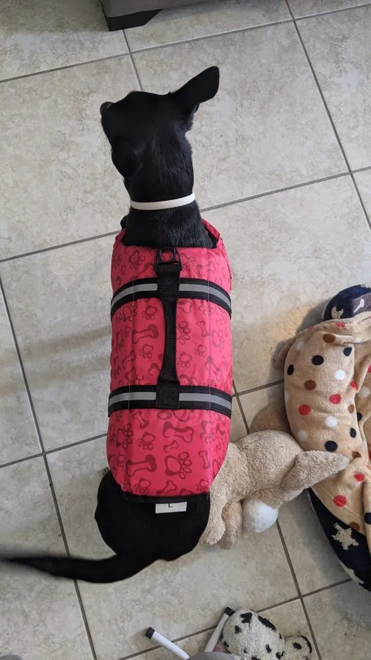 Собака довольна своей жилеткой Доставка может быть быстрее, но не самая медленная.