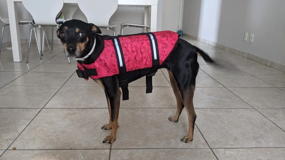 Жилет очень хорошо сделан, хорошо сшит и яркий цвет. Очень красивый, но еще не протестирован, но после того, как поговорите, как было. Доставка была отложена, на отправку ушло 1 неделя, но товар прибыл в Бразилию (SP), всего 3 дня. У моей собаки 14 кг, и я получил L.