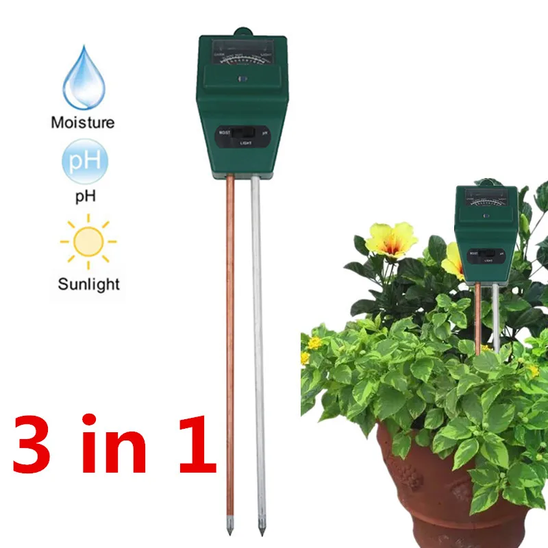 Лидер продаж, наборы для испытаний цветов и почвы, 3 в 1, прибор для измерения PH растений, анализатор освещенности, измеритель влажности, светильник, инструмент для растений