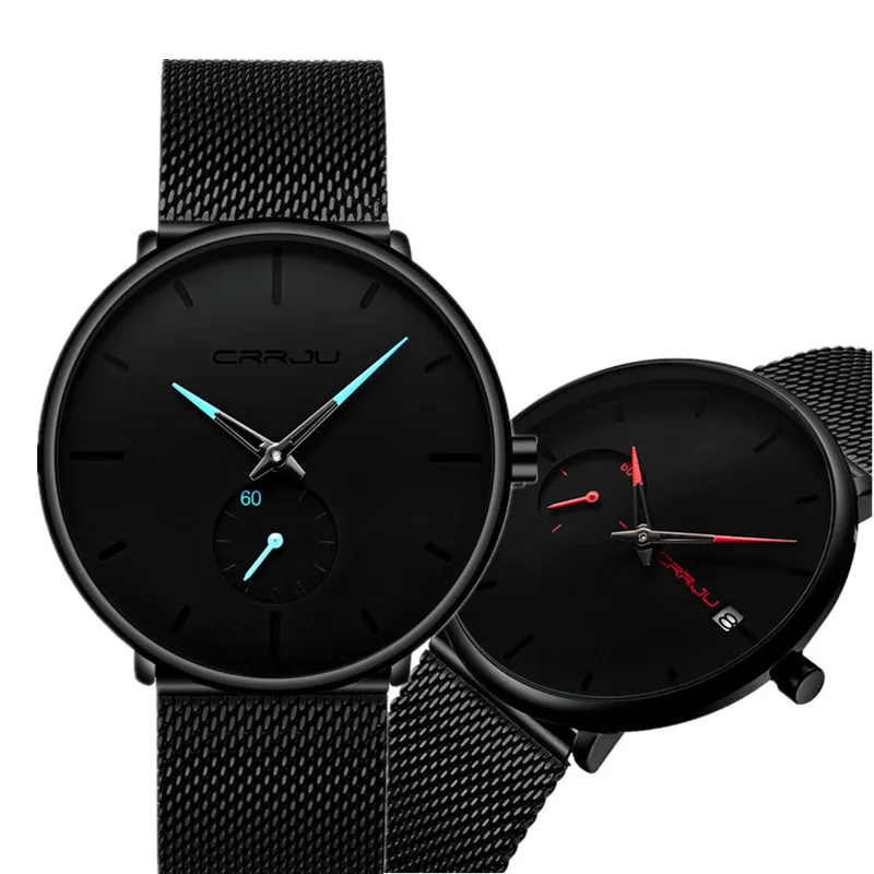 CRRJU модные часы, водонепроницаемые тонкие сетчатые браслеты, минималистичные наручные часы для мужчин и женщин, роскошные спортивные часы, набор часов для пар