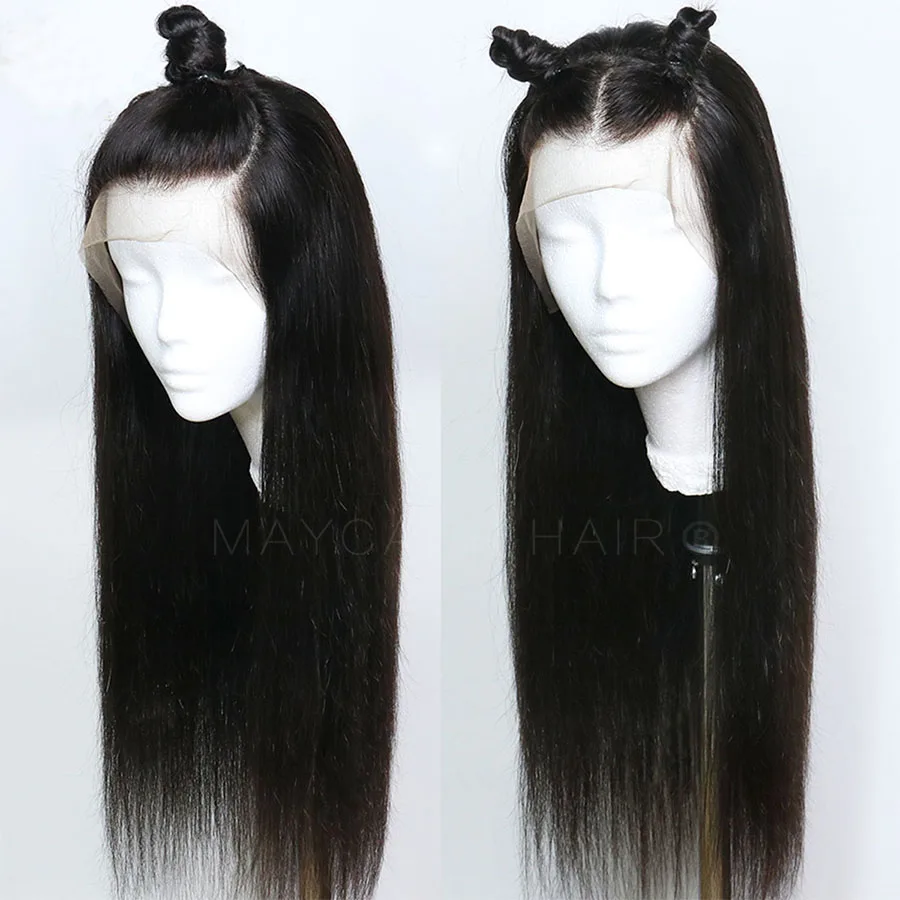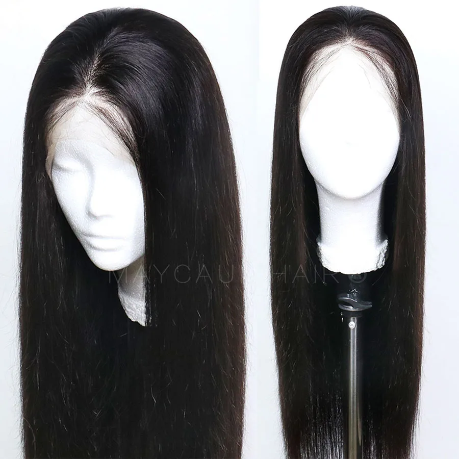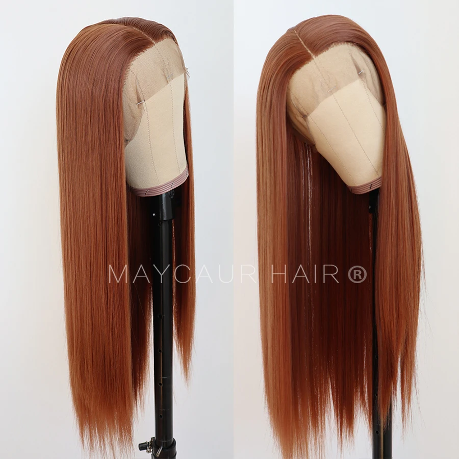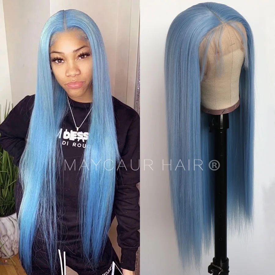 Черный длинный прямой синтетический кружевной передний парик Maycaur для чернокожих женщин, Gluless парик с естественной линией волос