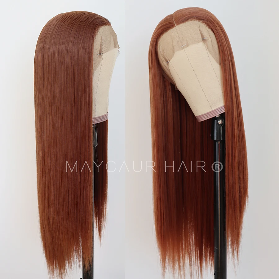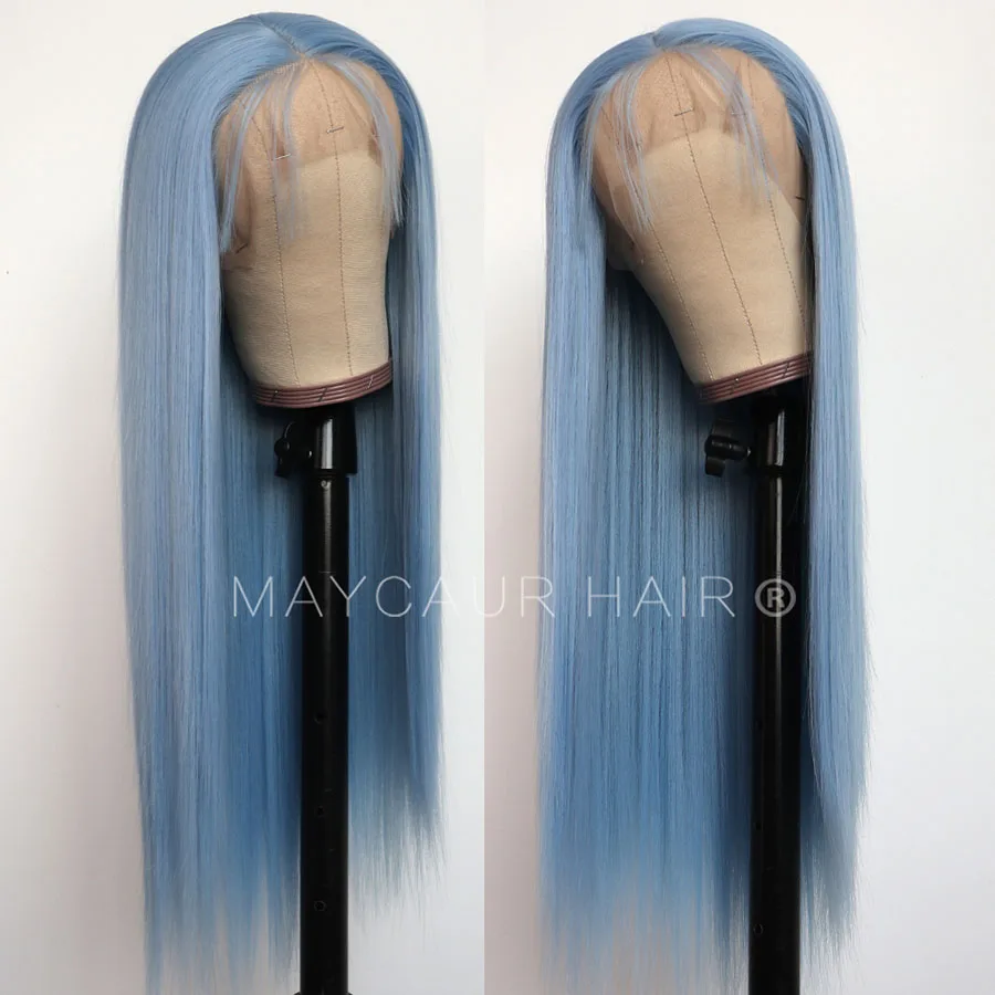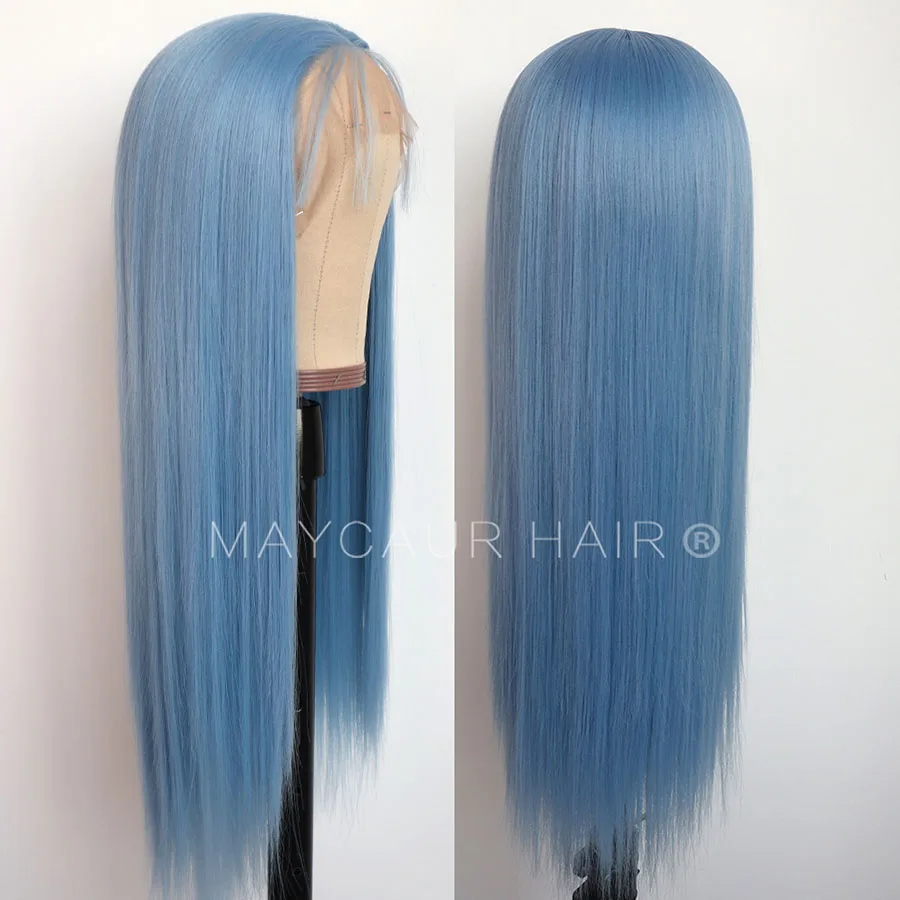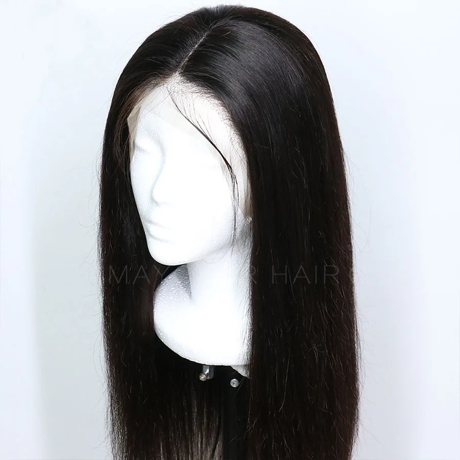 Черный длинный прямой синтетический кружевной передний парик Maycaur для чернокожих женщин, Gluless парик с естественной линией волос