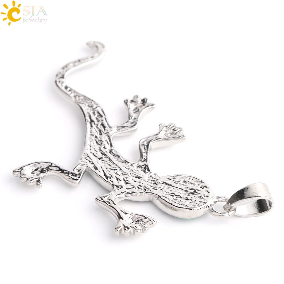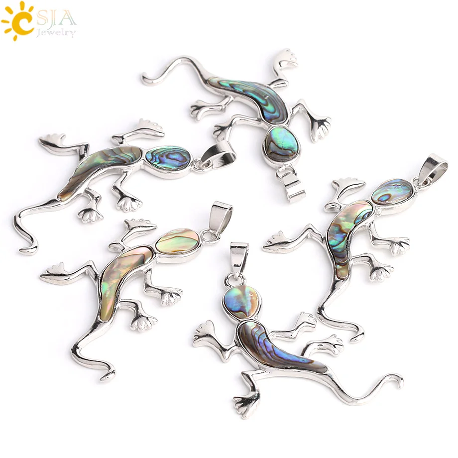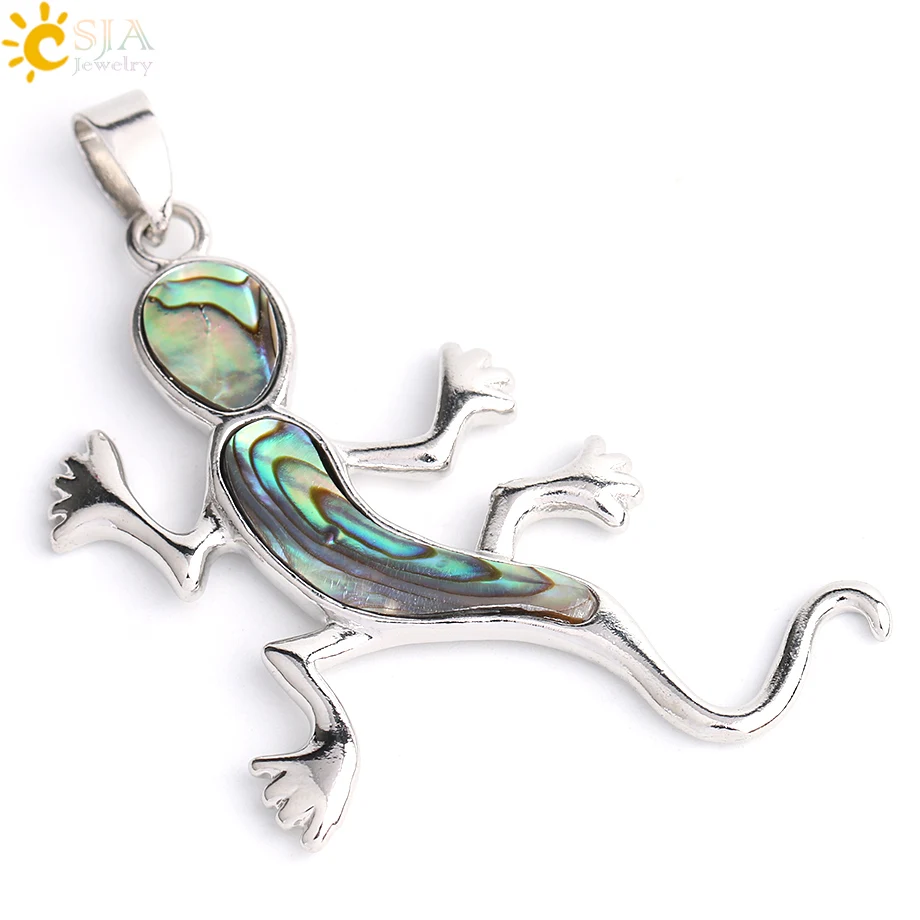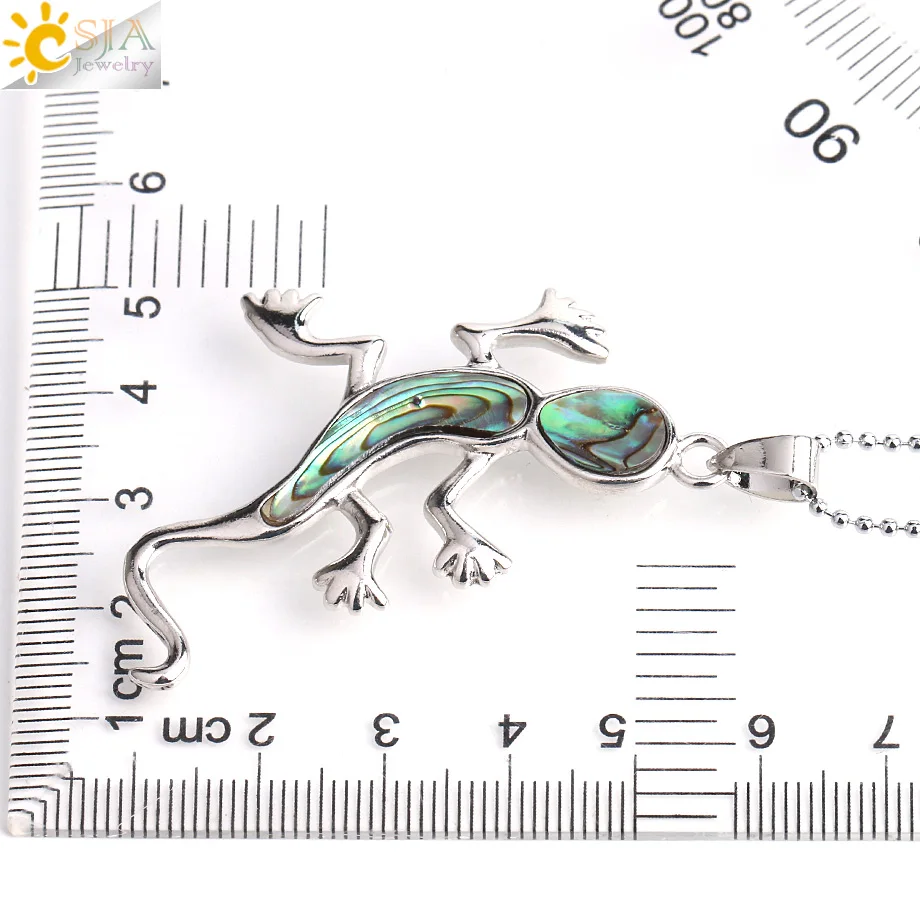 CSJA Дом Ящерица Геккон кулон и ожерелье Новая Зеландия натуральный Абалон оболочки Серебряный цвет Подвески животных Ювелирные изделия для женщин мужчин G053