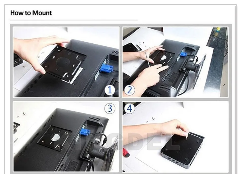 Мини ПК, адаптер питания, кабель питания, Wifi антенны, кронштейн стойки, винты, HDMI кабель