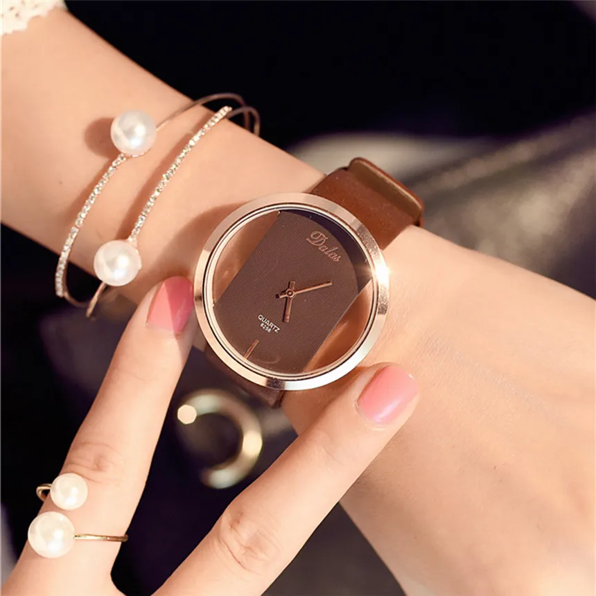 Роскошные женские часы с кожаным ремешком, часы-скелетоны, женские наручные часы, повседневные кварцевые часы, женские наручные часы для девушек D30