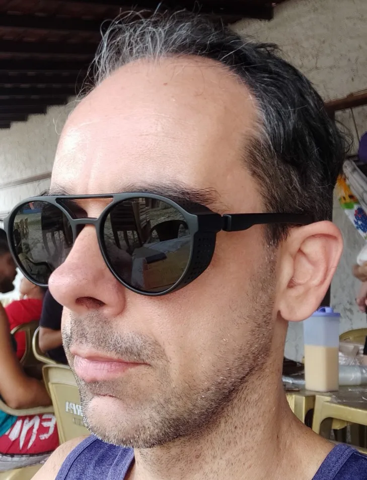 óculos se encaixa perfeitamente no rosto!Só tem que tomar cuidado porque o material da armação é frágil.