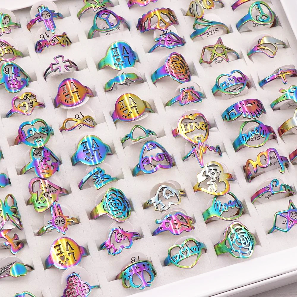 50 шт.лот разноцветные кольца из нержавеющей стали для вечерние