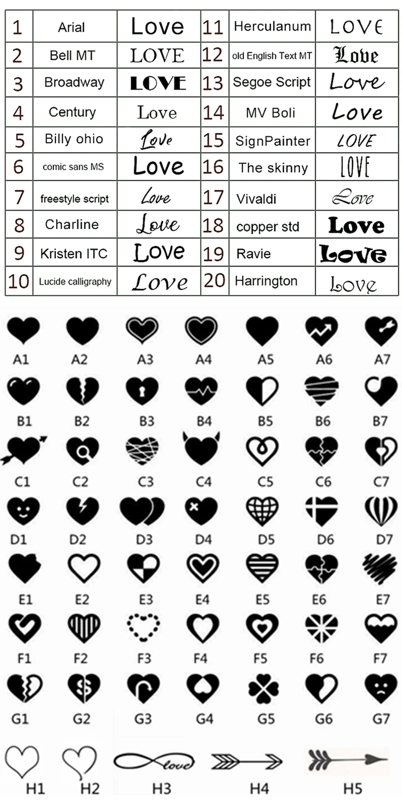 --- Выберите цвет и добавьте его в корзину.--- Выберите шрифт и символы--- Оставьте серийный номер шрифта и символов и текст, который вы хотите выгравировать в разделе «примечания продавцу» или свяжитесь с продавцом напрямую.