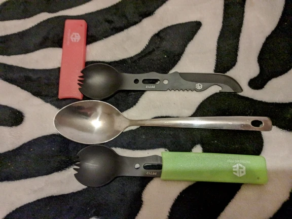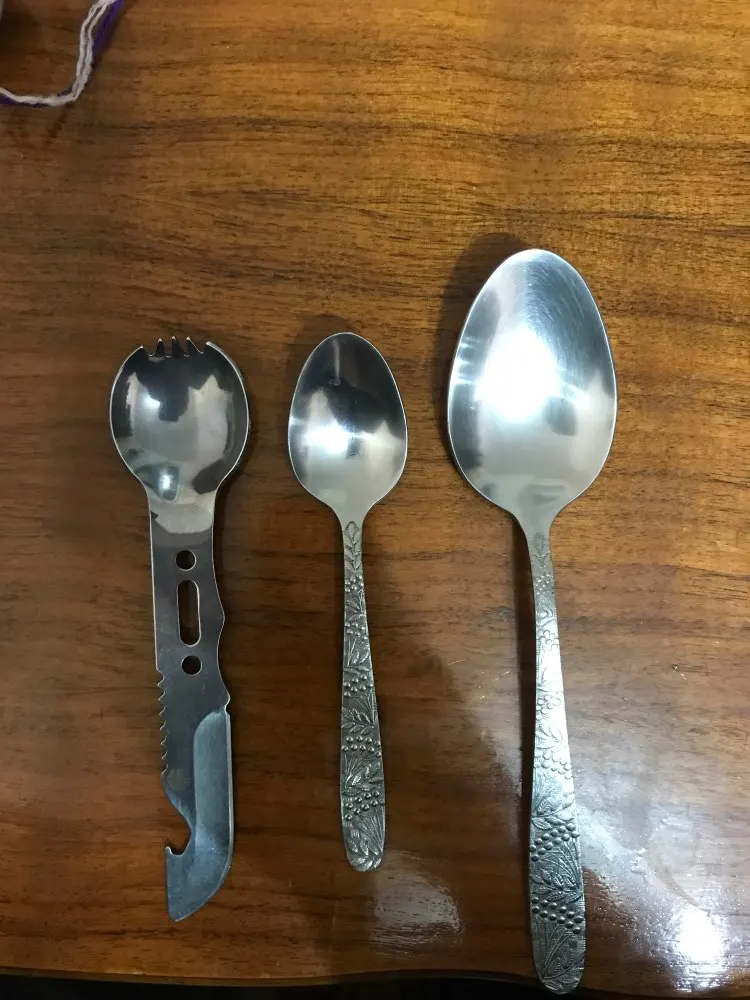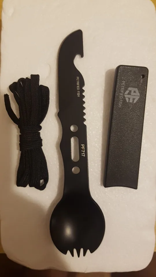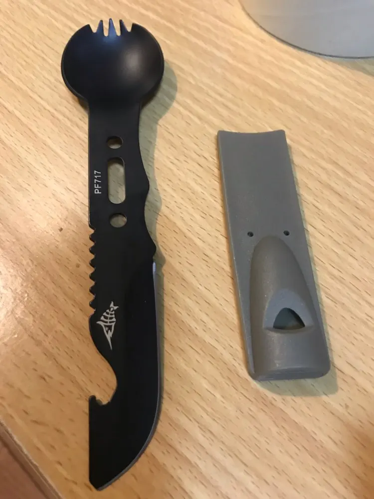 Отличный многофункциональный инструмент. Ложка вилка нож открывалка свисток и бонусом нейлоновая нить) за свою цену отличное качество
