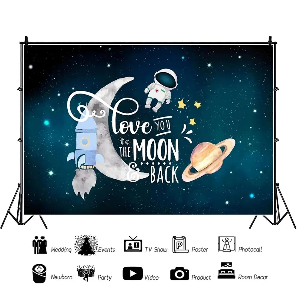 Детский мультяшный космический корабль космонавт обратно в Луну детский день рождения плакат фото фон фотография фоны для фотостудии