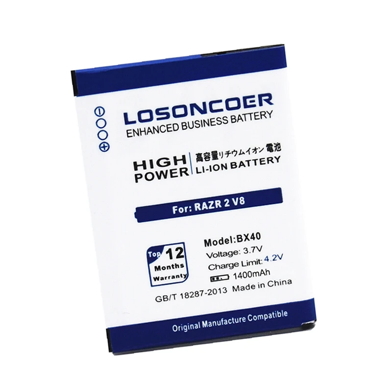 Описание: 1. Емкость: 1400 мАч 2. Использование для: MOTOROLA BX40 RAZR 2 RAZR2 V8 V9 V9m 3. Безопасность и окружающая среда: двойные функции защиты. Двойная IC и PCB электрическая плата защищают от разряда заряда и короткого замыкания. 4. Аккумулятор того же размера с оригинальной батареей. Товары имеют1.YУхоВаRranty.HПР-если у вас возникли какие-либо вопросы, пожалуйста, сообщите намREplacyОдинNeW.