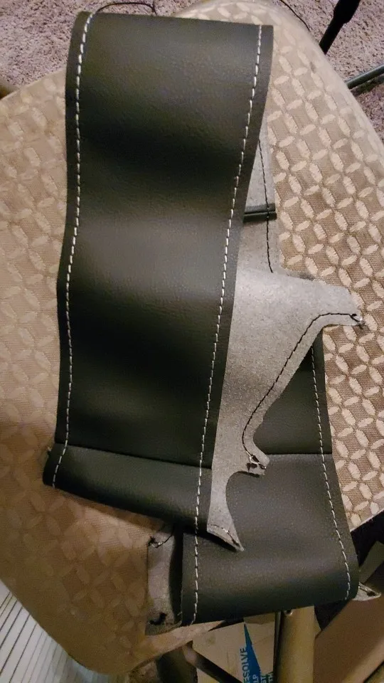Ручная прострочка мягкой натуральной кожи черного цвета чехол рулев...