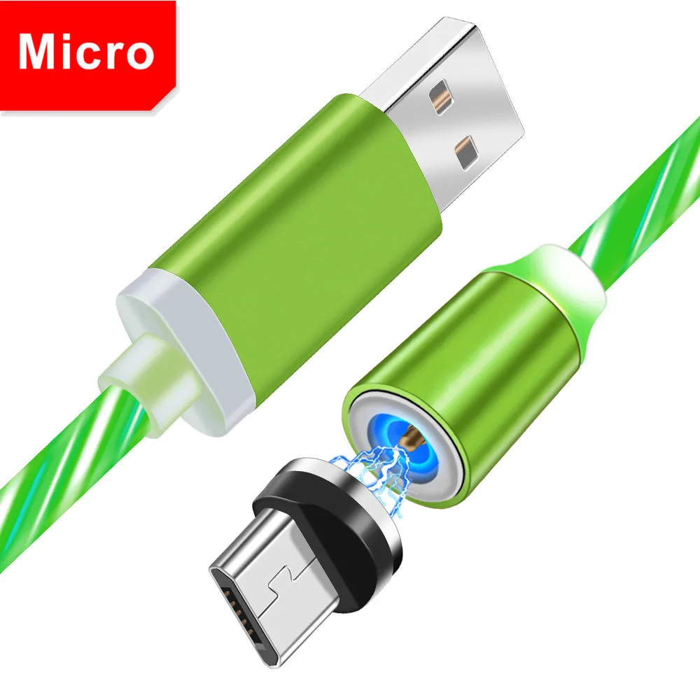 Для Samsung S4 S6 S8 A10 A50 со светящимися вставками на магните, на присоске, устройство для быстрой зарядки с разъемом Micro USB Type-C кабель для Xiaomi Mi8 Redmi 7 Note 6 Pro