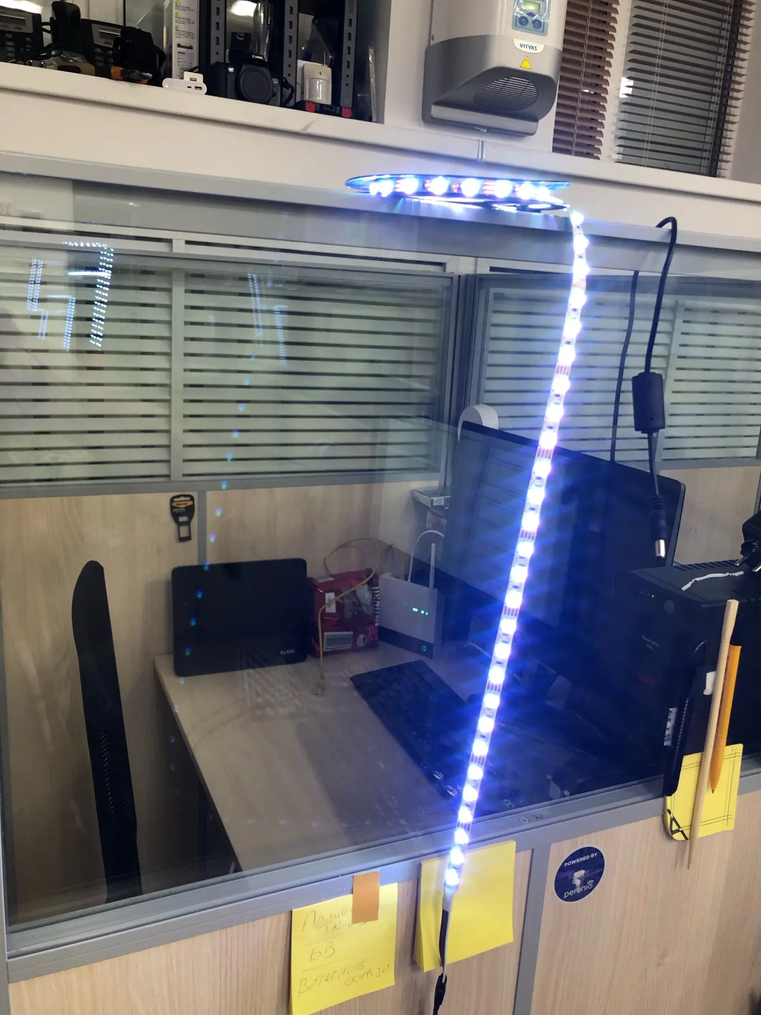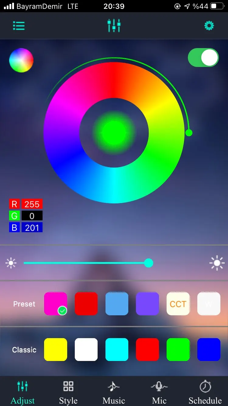 Включил, пока работают. Цвет программно меняют, на музыку реагируют.